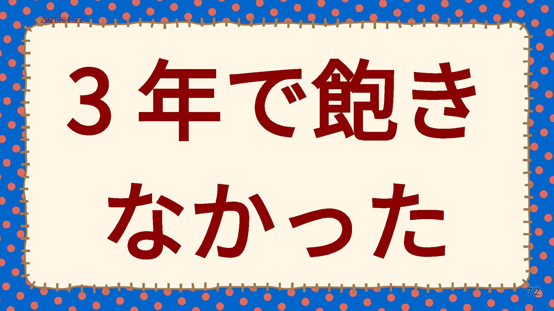 3 年で飽き なかった 2026.01.22 2026.01.22 72 72