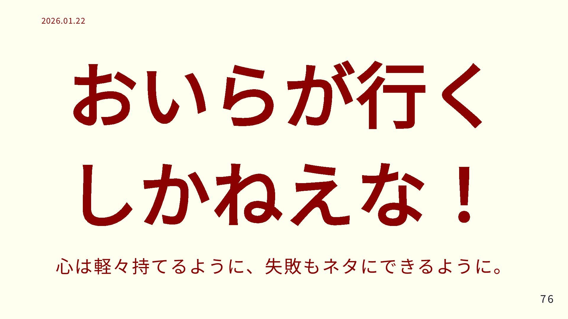 おいらが行く しかねえな! 心は軽々持てるように、失敗もネタにできるように。 76 76 2026.01.22 2026.01.22