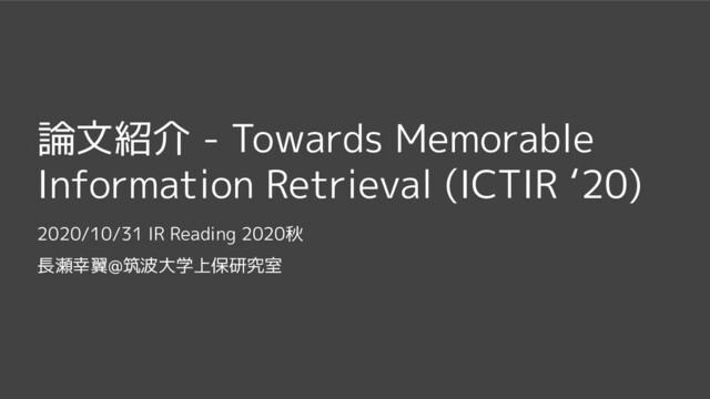1. 論文紹介 - Towards Memorable Information Retrieval (ICTIR ‘20) 2020/10/31 IR