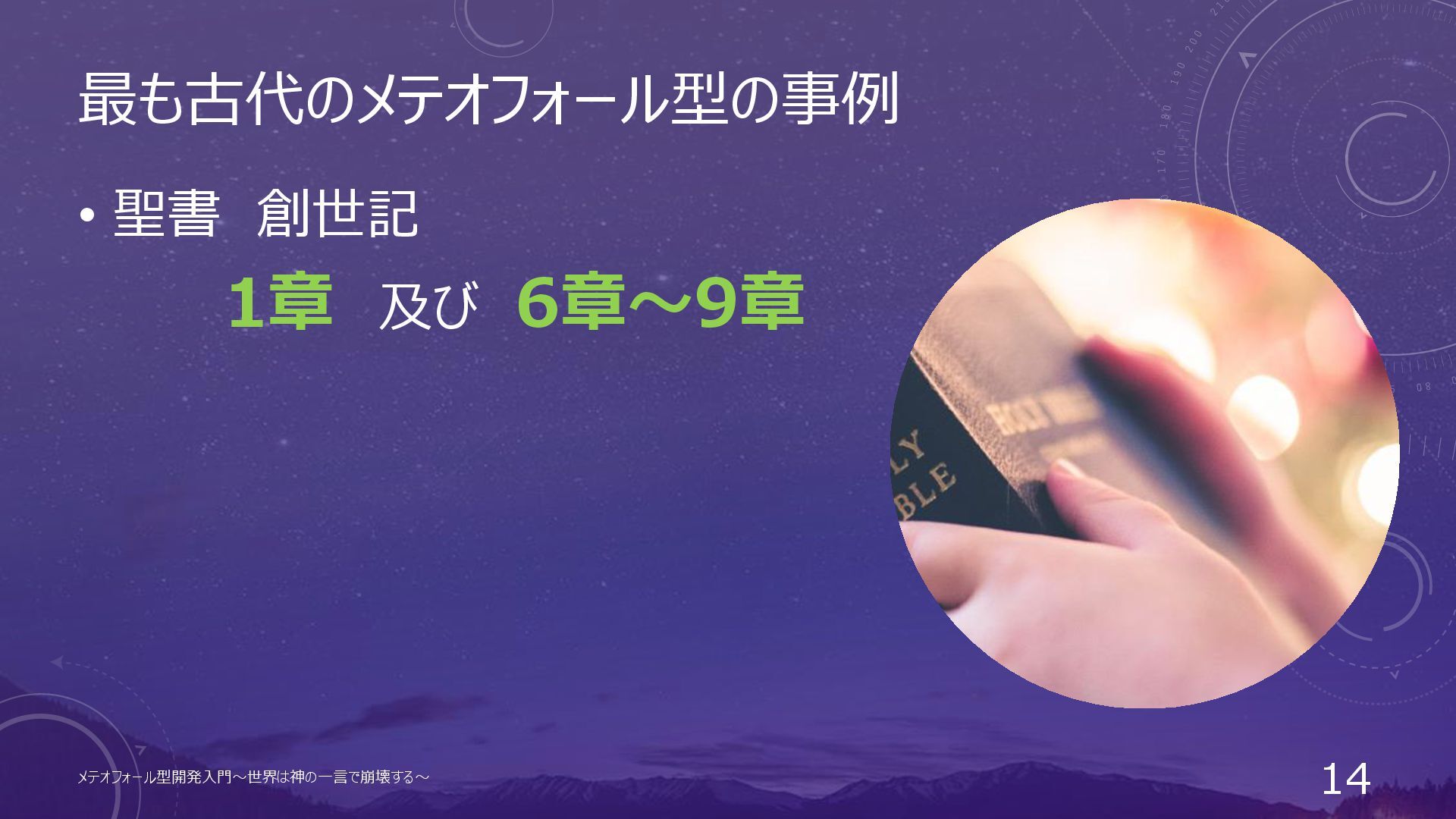 世のプロジェクトはこの2種類 メテオフォールが発生する開発 • 神の怒りにより、メテオが 発動したプロジェクト メテオフォールが発生しない開発 • 神が怒らず、メテオが 発動しなかったプロジェクト メテオフォール型開発入門~世界は神の一言で崩壊する~