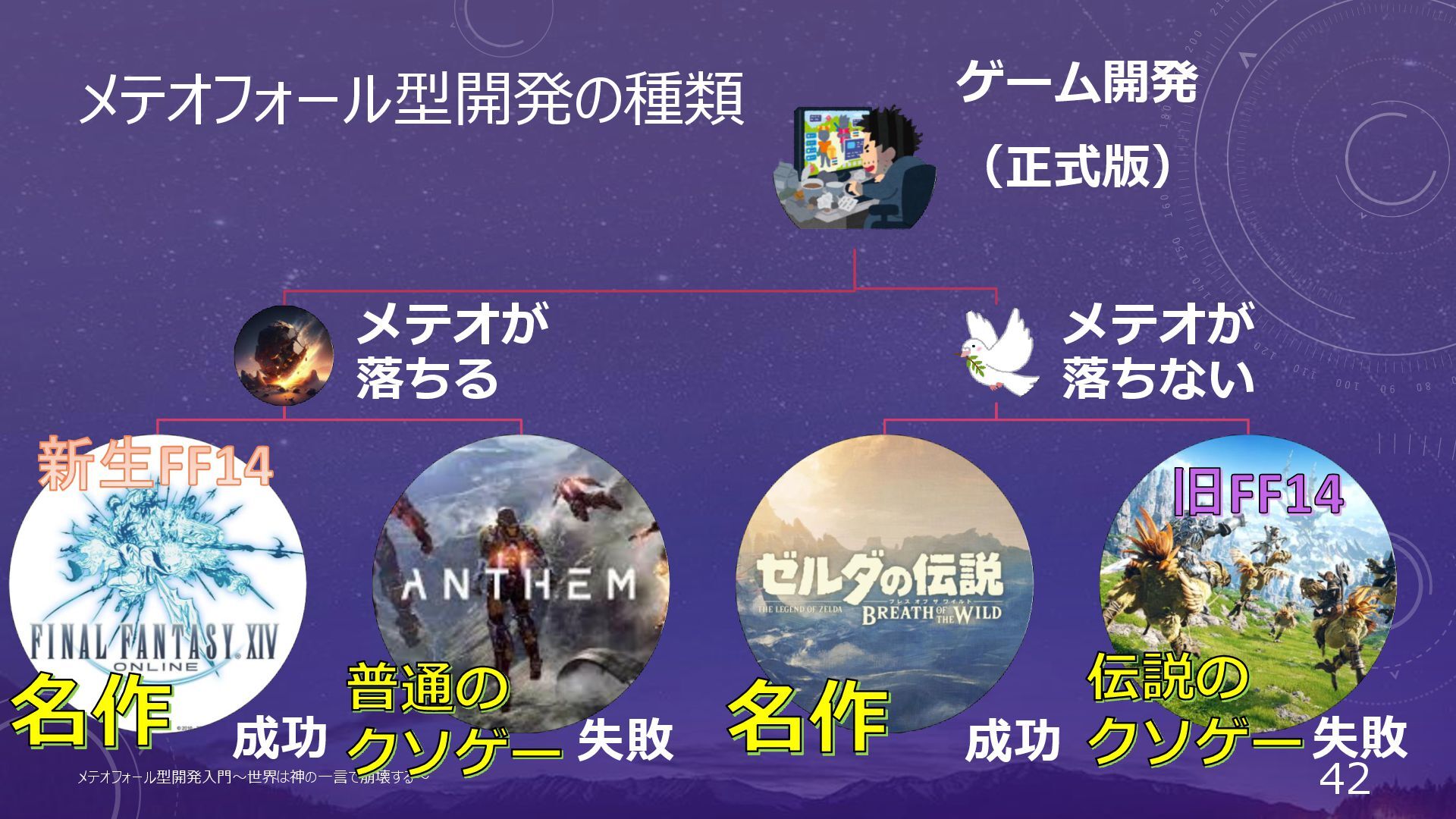 失敗 メテオフォール型開発入門~世界は神の一言で崩壊する~ 42 伝説の クソゲー 普通の クソゲー 名作 名作 旧FF14 新生FF14