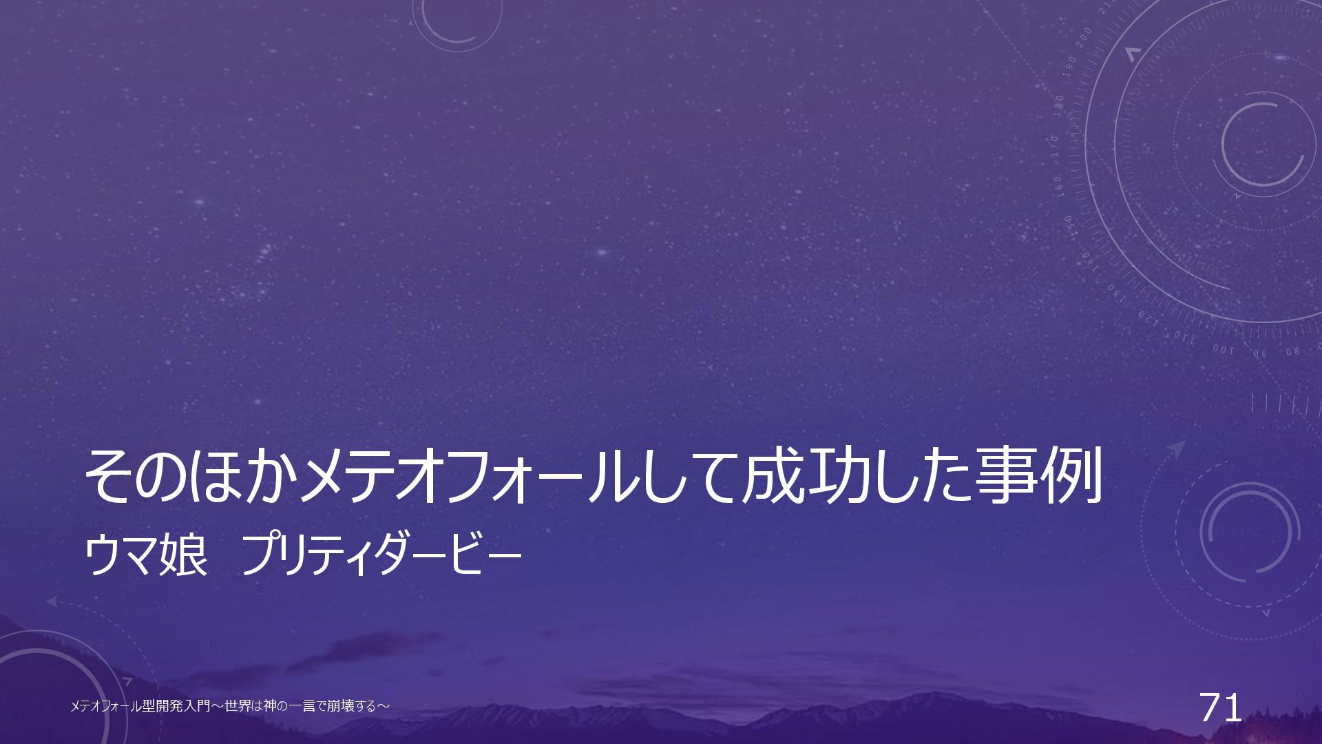 そのほかメテオフォールして成功した事例 ウマ娘 プリティダービー メテオフォール型開発入門~世界は神の一言で崩壊する~ 71