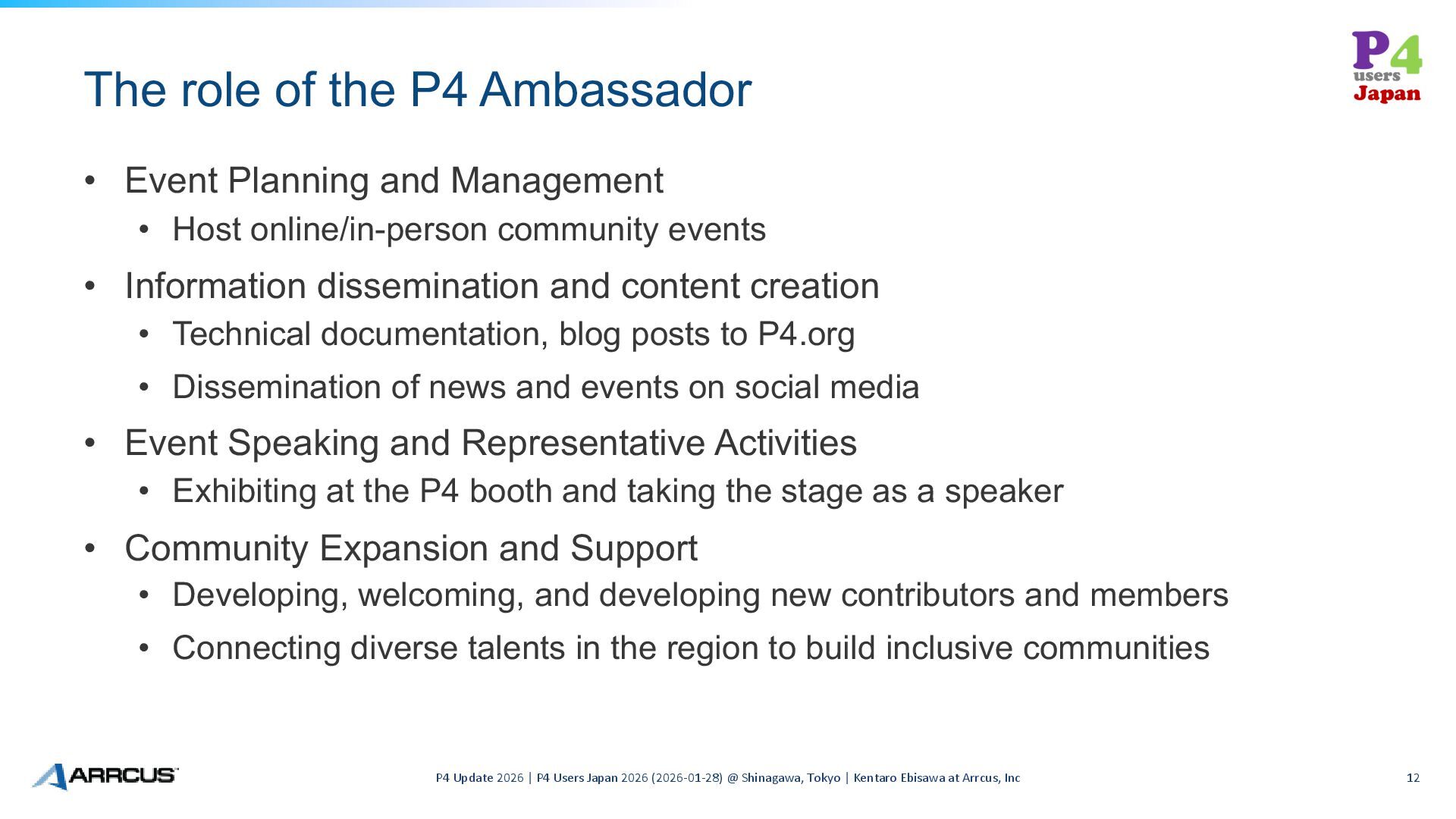 12. P4 Ambassador Program P4 Update 2026 | P4 Users Japan