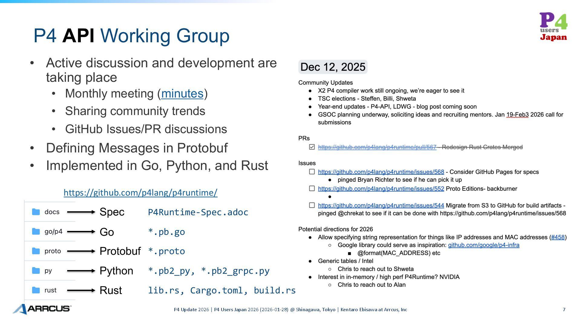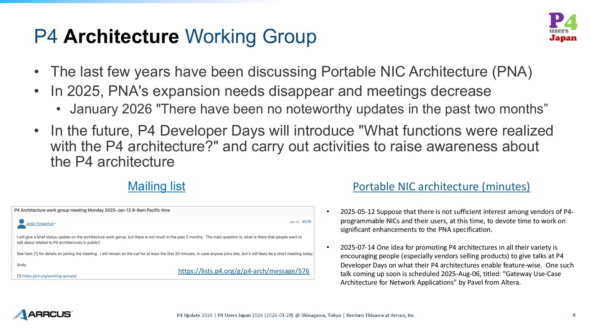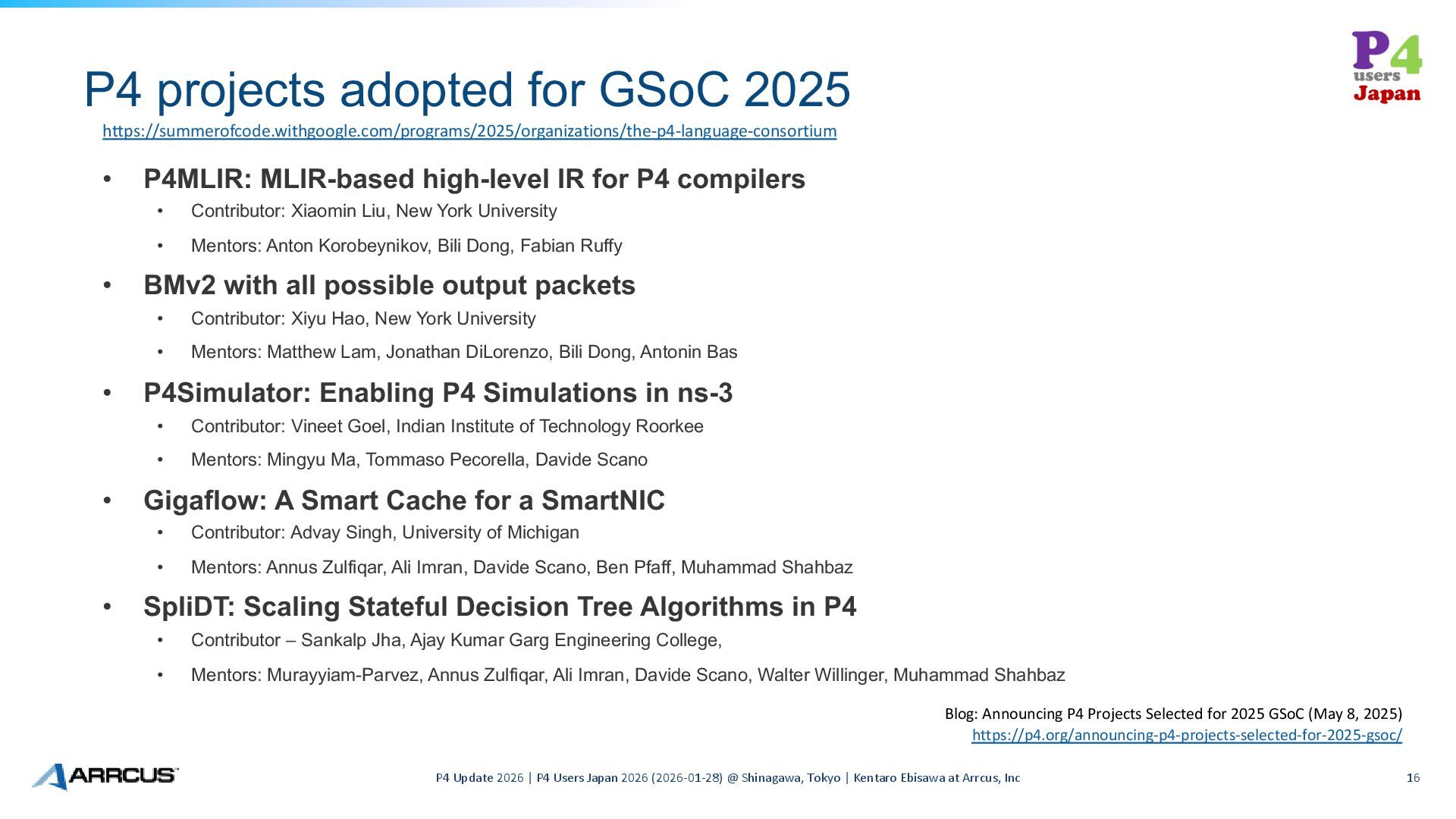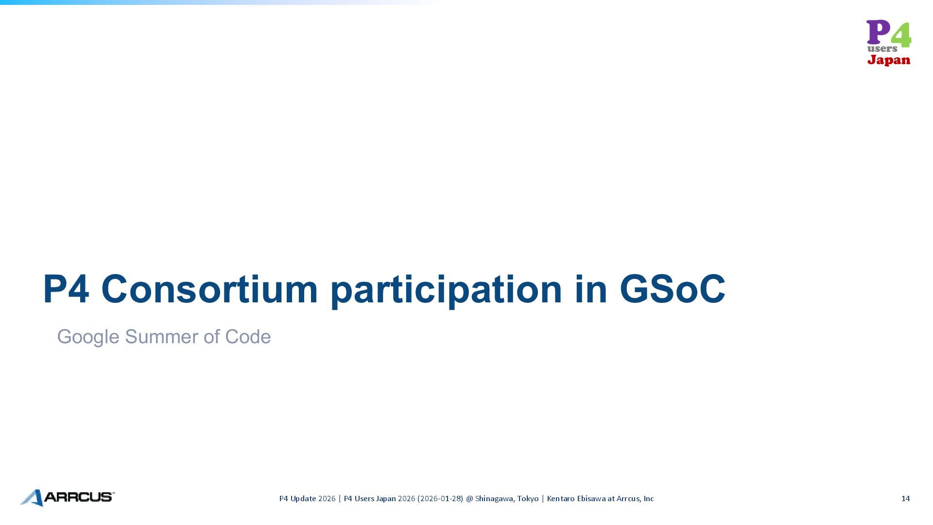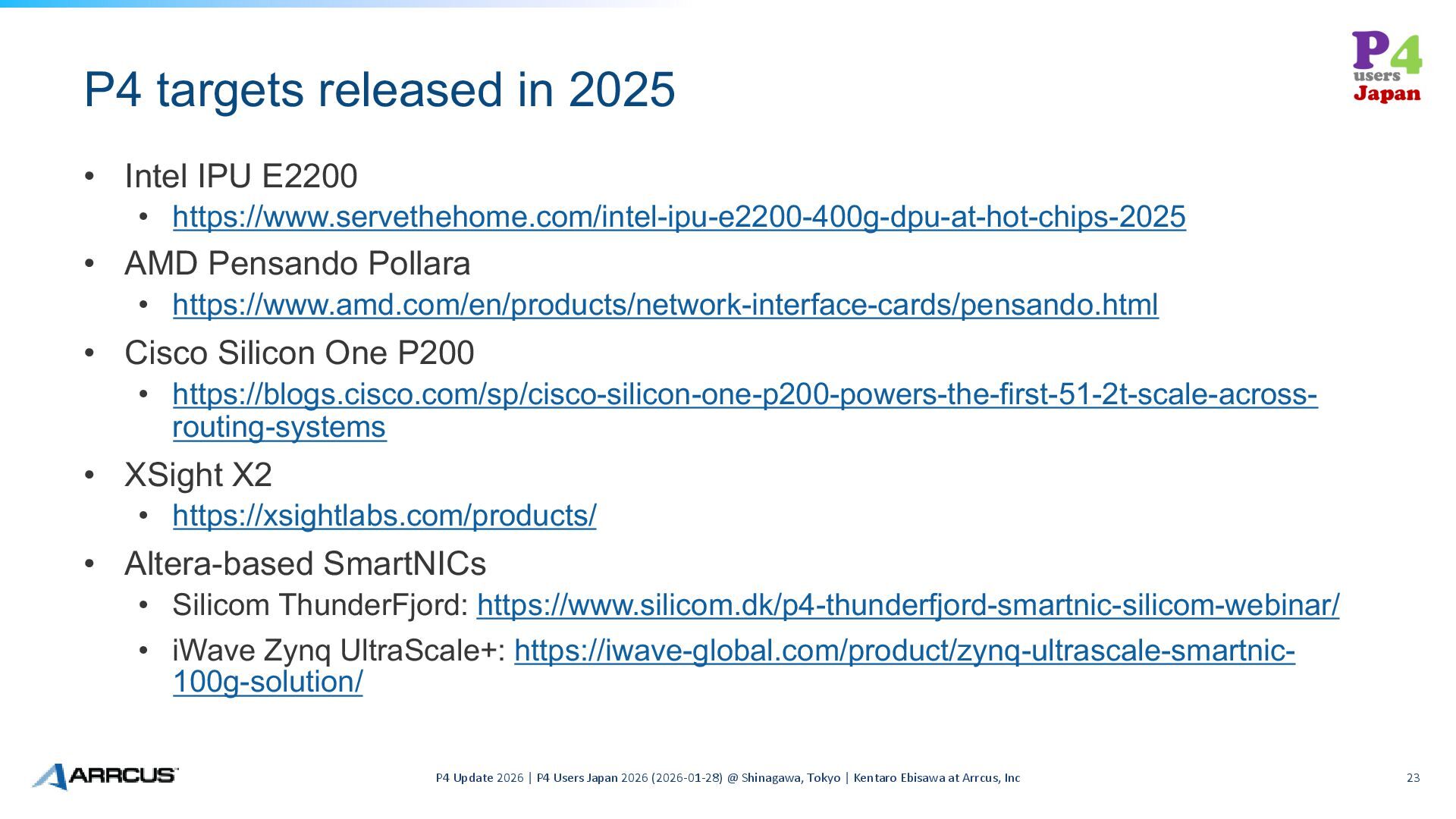 Update 2026 | P4 Users Japan 2026 (2026-01-28) @ Shinagawa, Tokyo | Kentaro Ebisawa at Arrcus, Inc 14