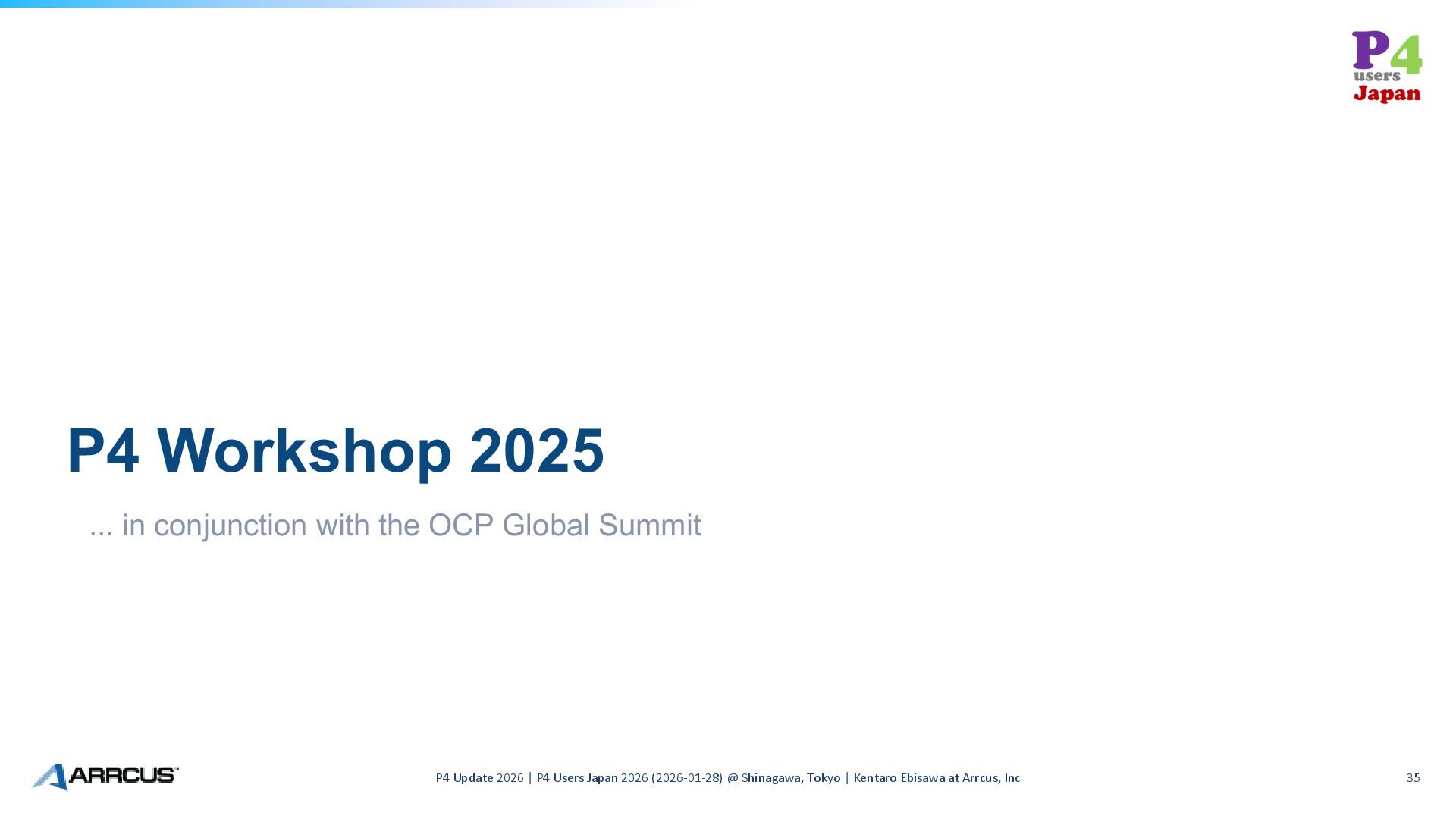 Summit P4 Update 2026 | P4 Users Japan 2026 (2026-01-28) @ Shinagawa, Tokyo | Kentaro Ebisawa at Arrcus, Inc 35