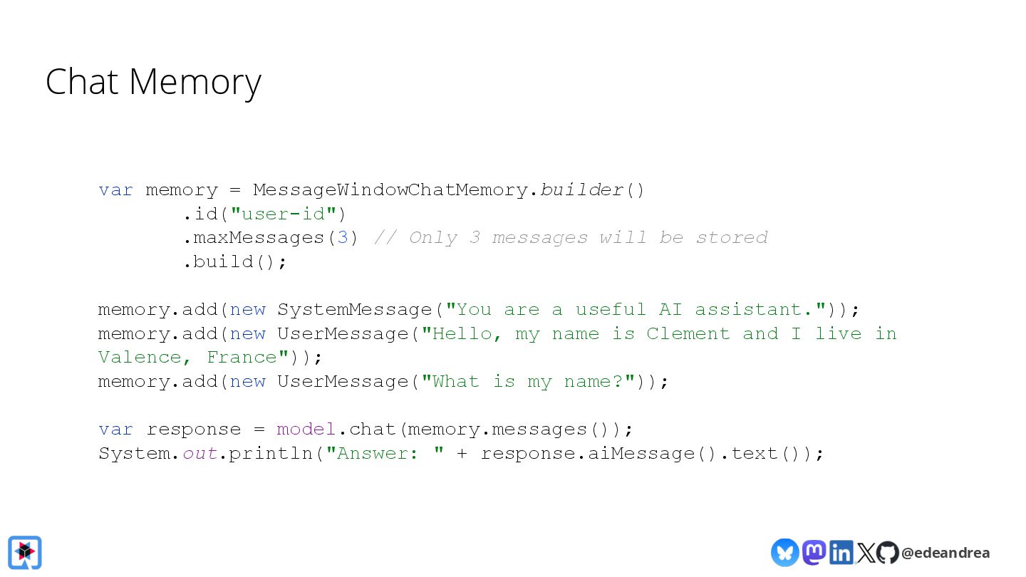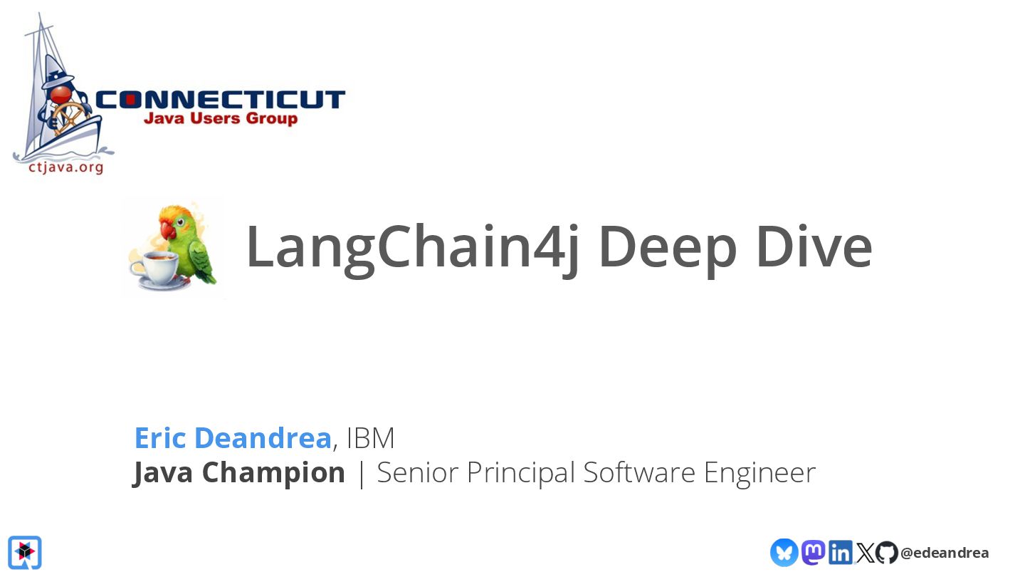 Join us for a guided tour through the possibilities of the LangChain4j framework! Chat with virtually any LLM provider (OpenAI, Gemini, HuggingFace, Azure, AWS, ...)? Generate AI images straight from your Java application with Dall-E and Gemini? Have LLMs return POJOs? Interact with local models on your machine? LangChain4j makes it a piece of cake! We will explain the fundamental building blocks of LLM-powered applications, show you how to chain them together into AI Services, and how to interact with your knowledge base using advanced RAG.