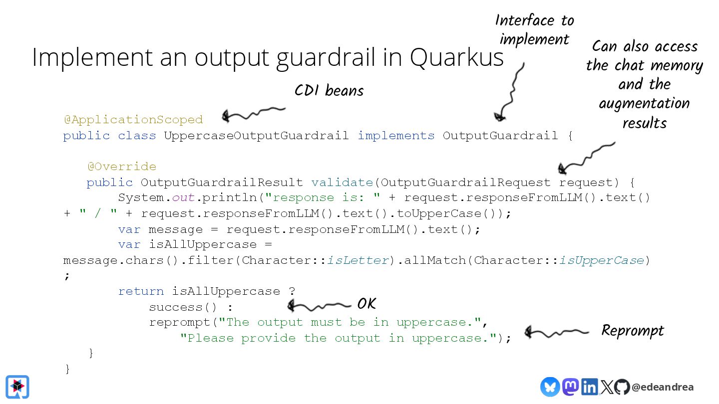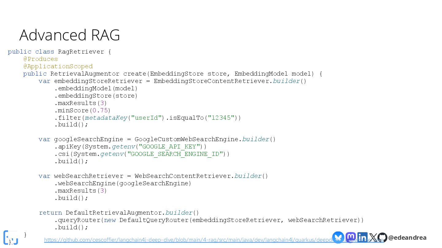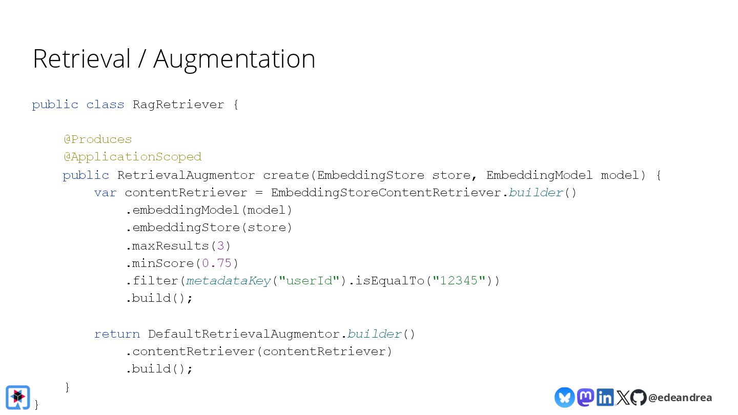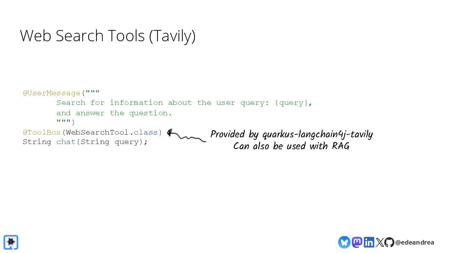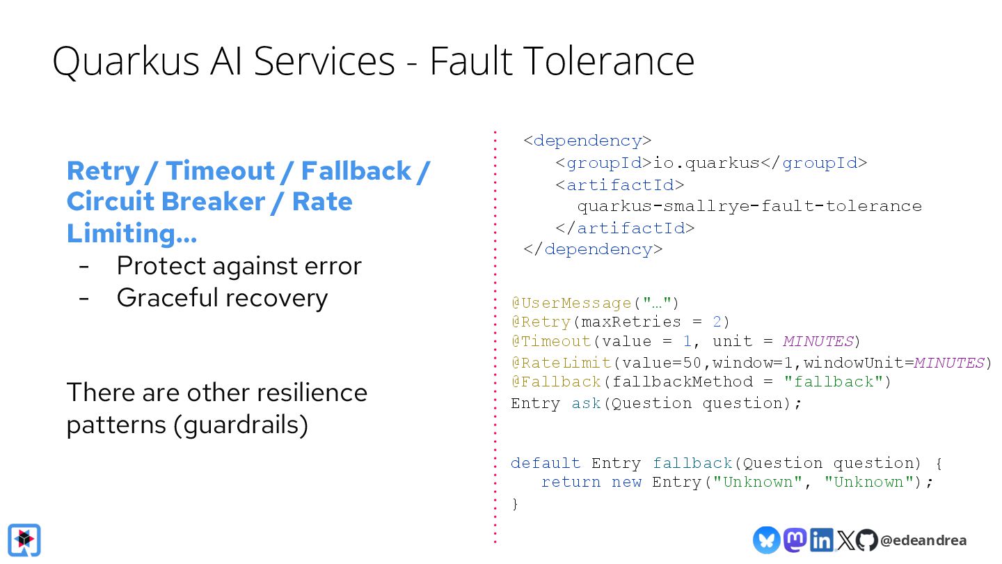 Discover how to seamlessly integrate major LLMs (OpenAI, Gemini, HuggingFace), generate AI images, and master advanced RAG patterns to chat with your own data. We’ll also take a deep dive into Quarkus integration, demonstrating how to leverage live reload for rapid, prompt experimentation and build native images for lightning-fast deployments. Join us to learn how to go from concept to a production-ready, AI-powered application with surprisingly little code.