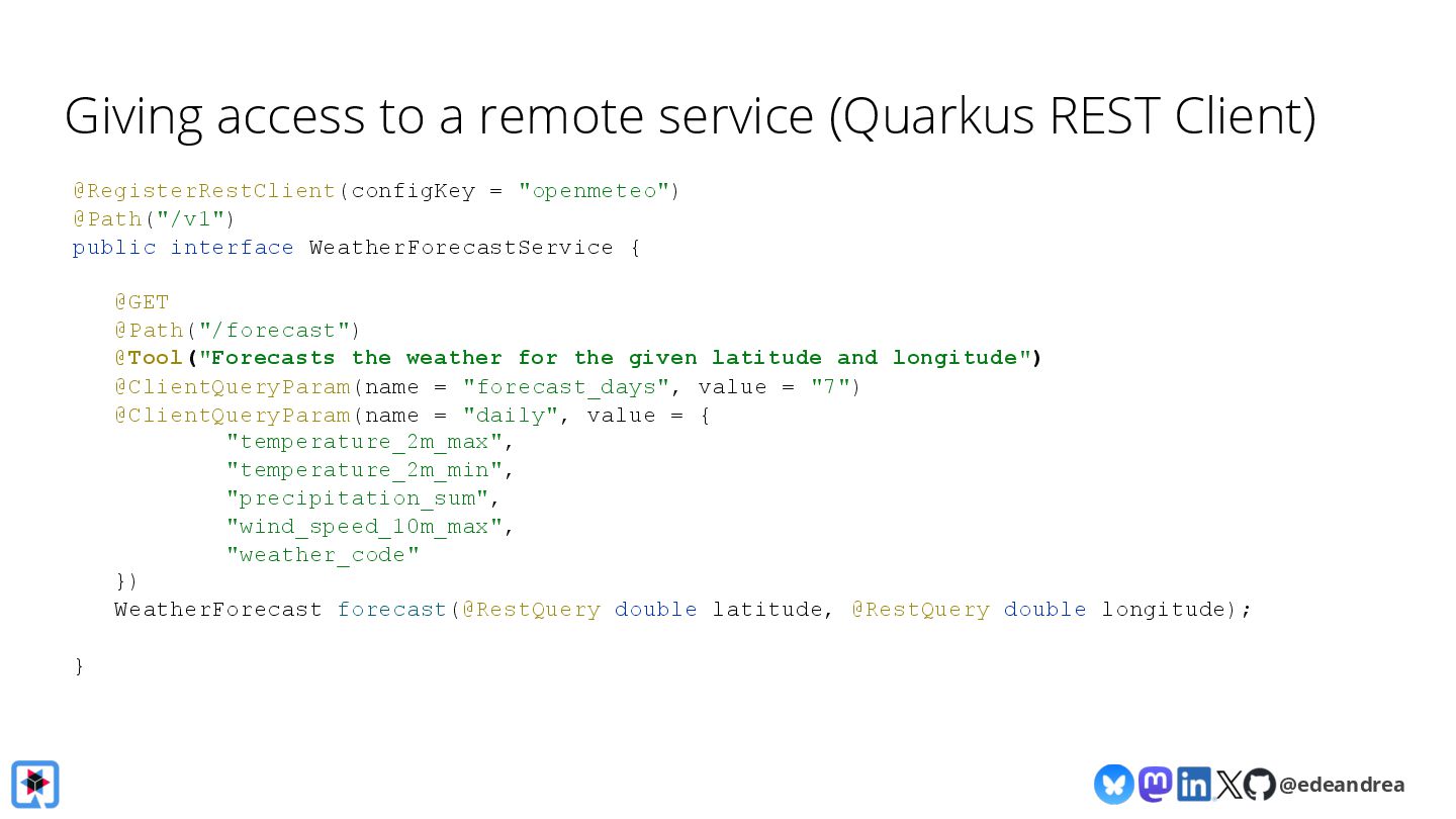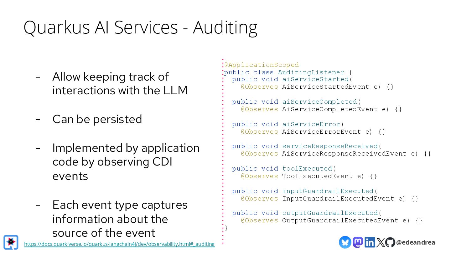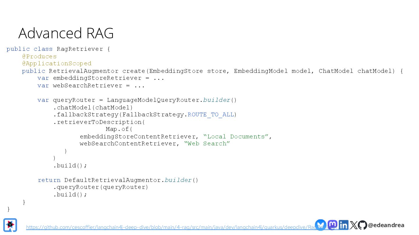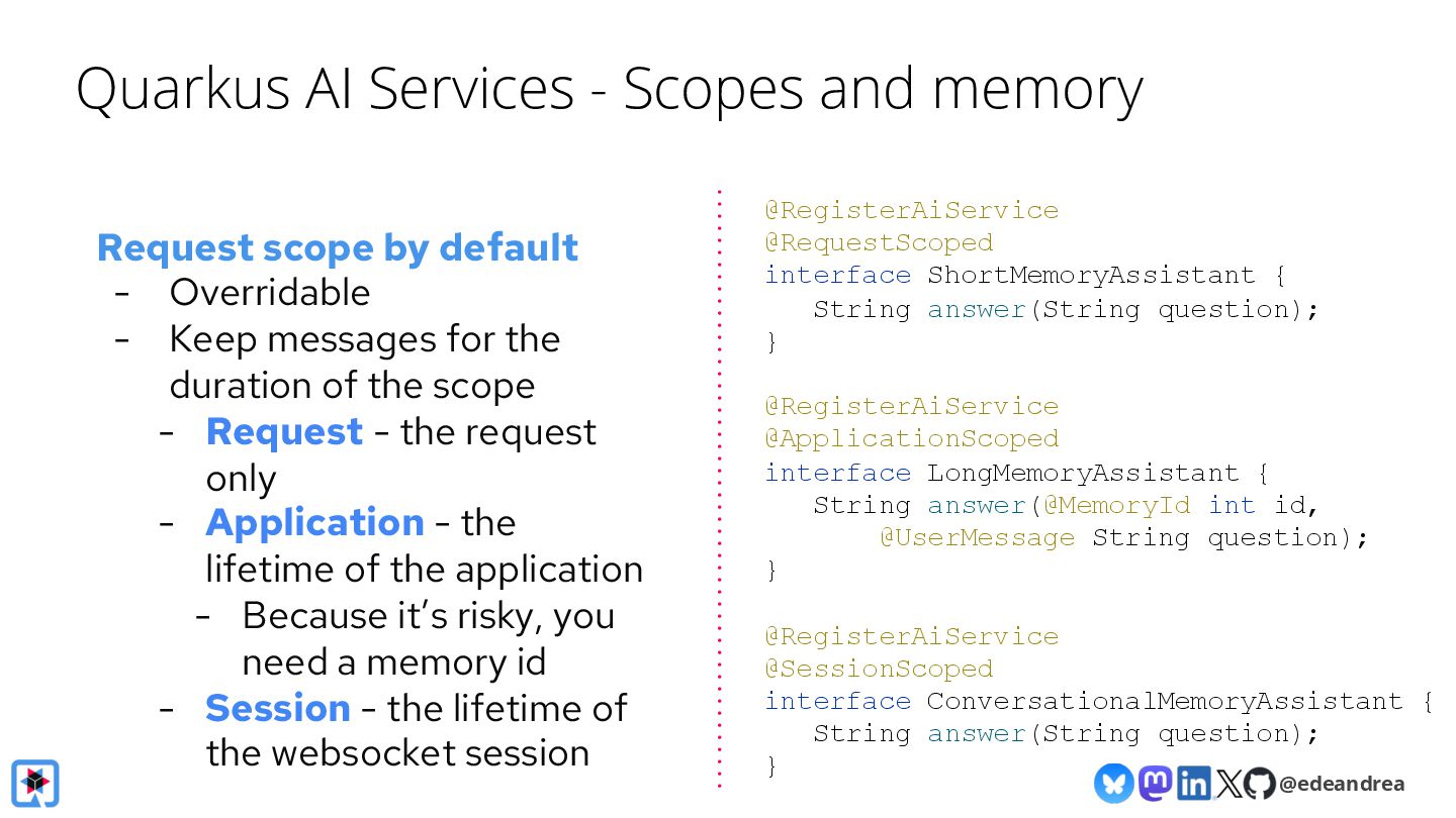 Discover how to seamlessly integrate major LLMs (OpenAI, Gemini, HuggingFace), generate AI images, and master advanced RAG patterns to chat with your own data. We’ll also take a deep dive into Quarkus integration, demonstrating how to leverage live reload for rapid, prompt experimentation and build native images for lightning-fast deployments. Join us to learn how to go from concept to a production-ready, AI-powered application with surprisingly little code.