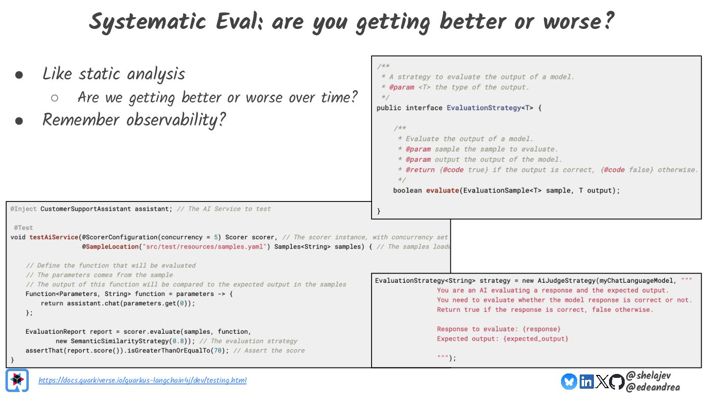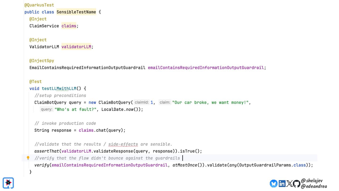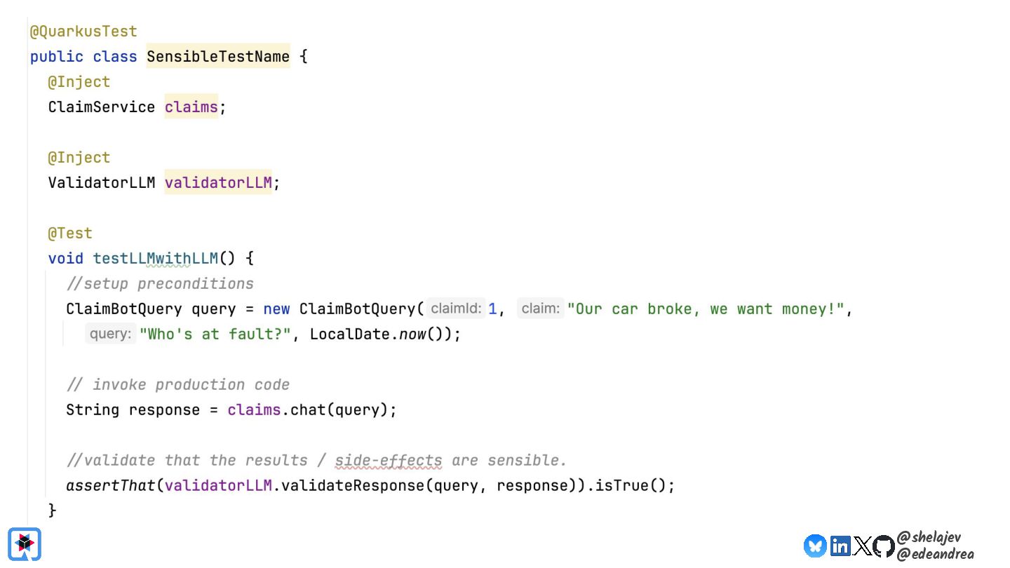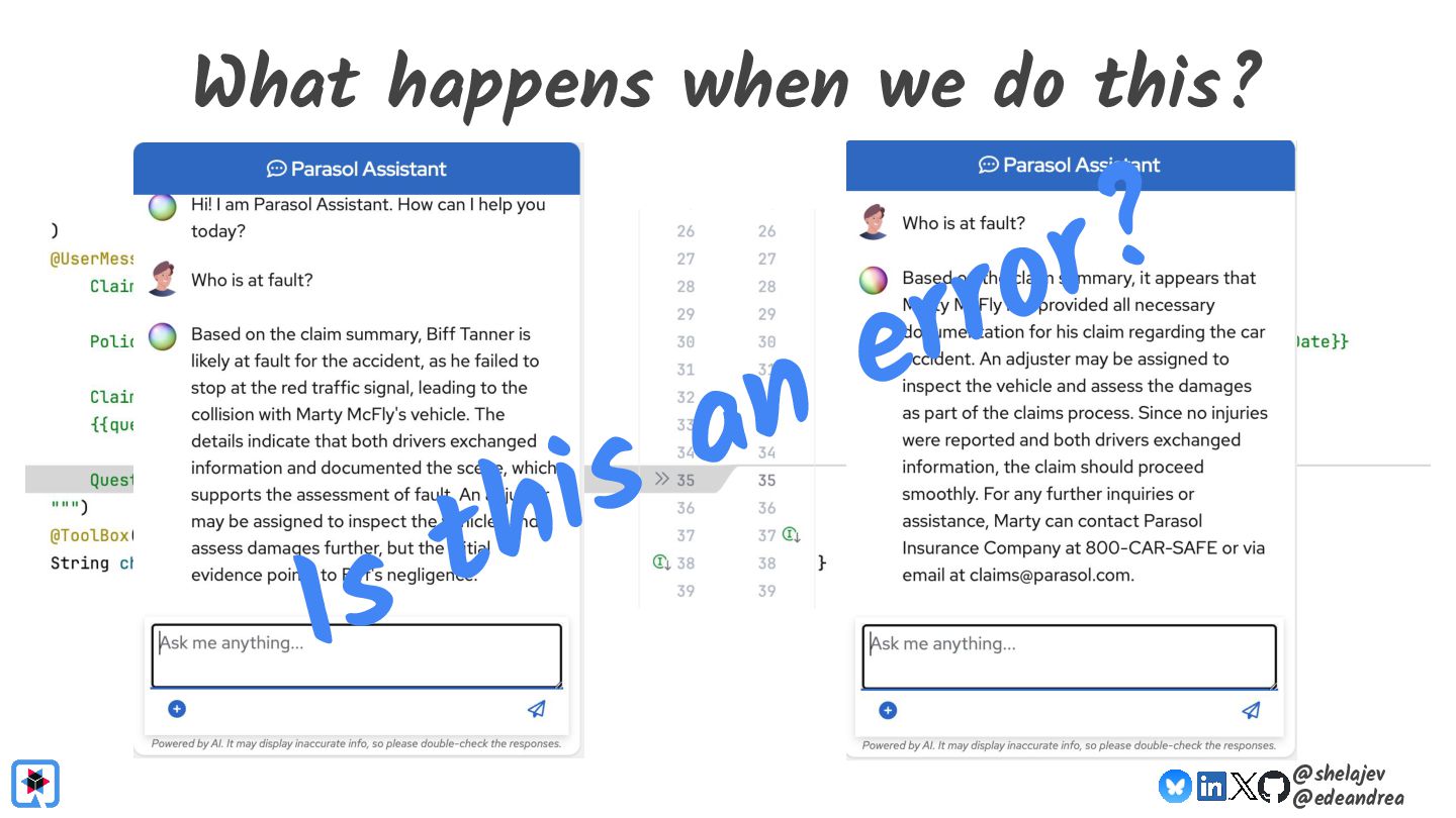 Testing is hard, which is why developers tend to avoid it. Testing non-deterministic things is even harder, which is unfortunate, since we're all writing AI-infused applications, and AI models are notoriously non-deterministic. What happens when the applications start using advanced features, such as RAG, tools, and agents? How do you test these applications? There must be some tools, technologies, and practices out there that can help, while not costing your organization lots of money!