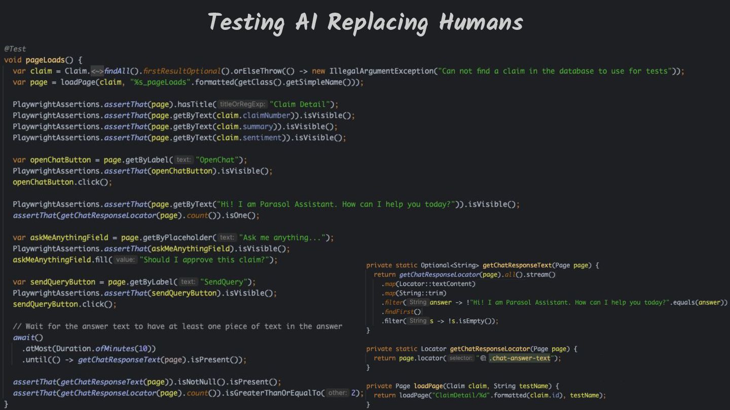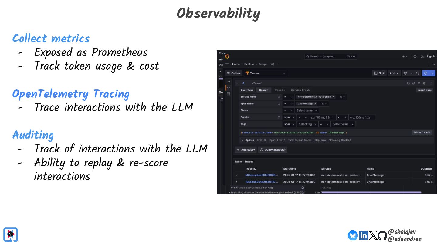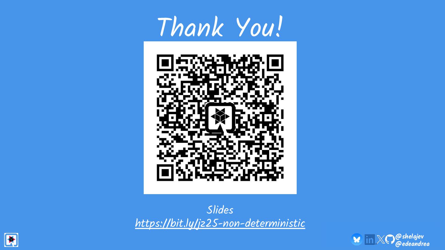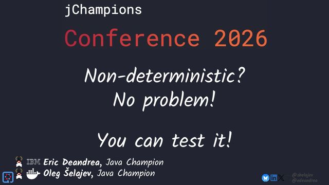 Testing is hard, which is why developers tend to avoid it. Testing non-deterministic things is even harder, which is unfortunate, since we're all writing AI-infused applications, and AI models are notoriously non-deterministic. What happens when the applications start using advanced features, such as RAG, tools, and agents? How do you test these applications? There must be some tools, technologies, and practices out there that can help, while not costing your organization lots of money!