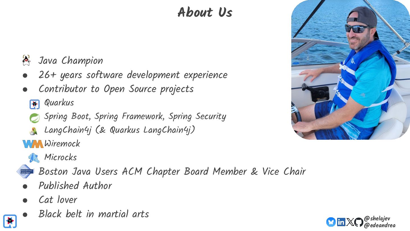 Join Java Champions Oleg & Eric in this session as they explore some of these tools & technologies, such as Testcontainers, LangChain4j, Quarkus, and Ollama. They’ll bring together Oleg’s Testcontainers knowledge and Eric’s testing obsessions, getting hands-on and show how you can incorporate these tools and technologies into your inner and outer loop processes.
