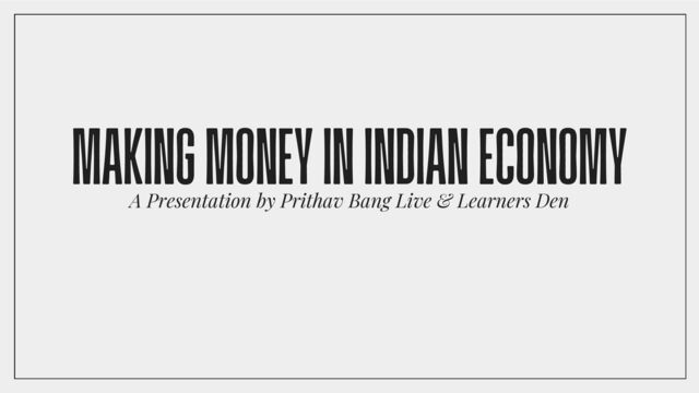 MAKING MONEY IN INDIAN ECONOMY A Presentation by Prithav Bang