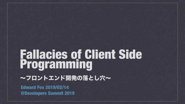 この資料は2019/02/14に登壇したDevelopers Summit 2019で利用した講演資料で、内容は2018/12/15に開催されたDevelopers Boost 2018登壇時に利用した資料「クライアントサイド開発の落とし穴 / Fallacies of Client Side Programming」を改変したものです。