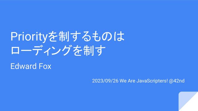 Priorityを制するものは ローディングを制す Edward Fox 2023/09/26 We Are JavaScripters! @42nd