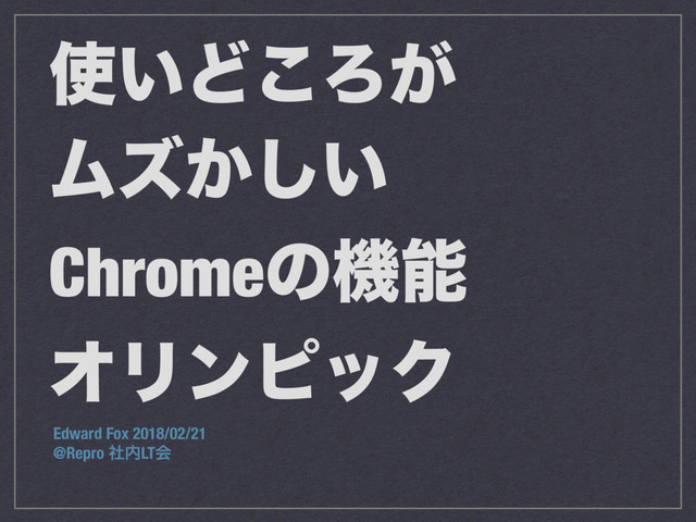 ͍Ͳ͜Ζ͕ Ϝζ͔͍͠ Chromeͷػೳ ΦϦϯϐοΫ Edward Fox 2018/02/21 @Repro ࣾLTձ