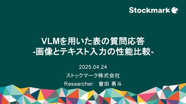 「マルチモーダル・LLM・VLM・RAGの実践」機械学習エンジニアのためのLT & MeetUp https://stockmark.connpass.com/event/350420/ イベントの登壇資料