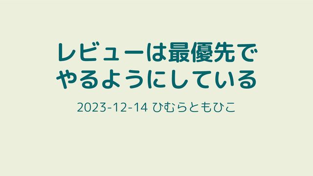 レビューは最優先で やるようにしている 2023-12-14 ひむらともひこ