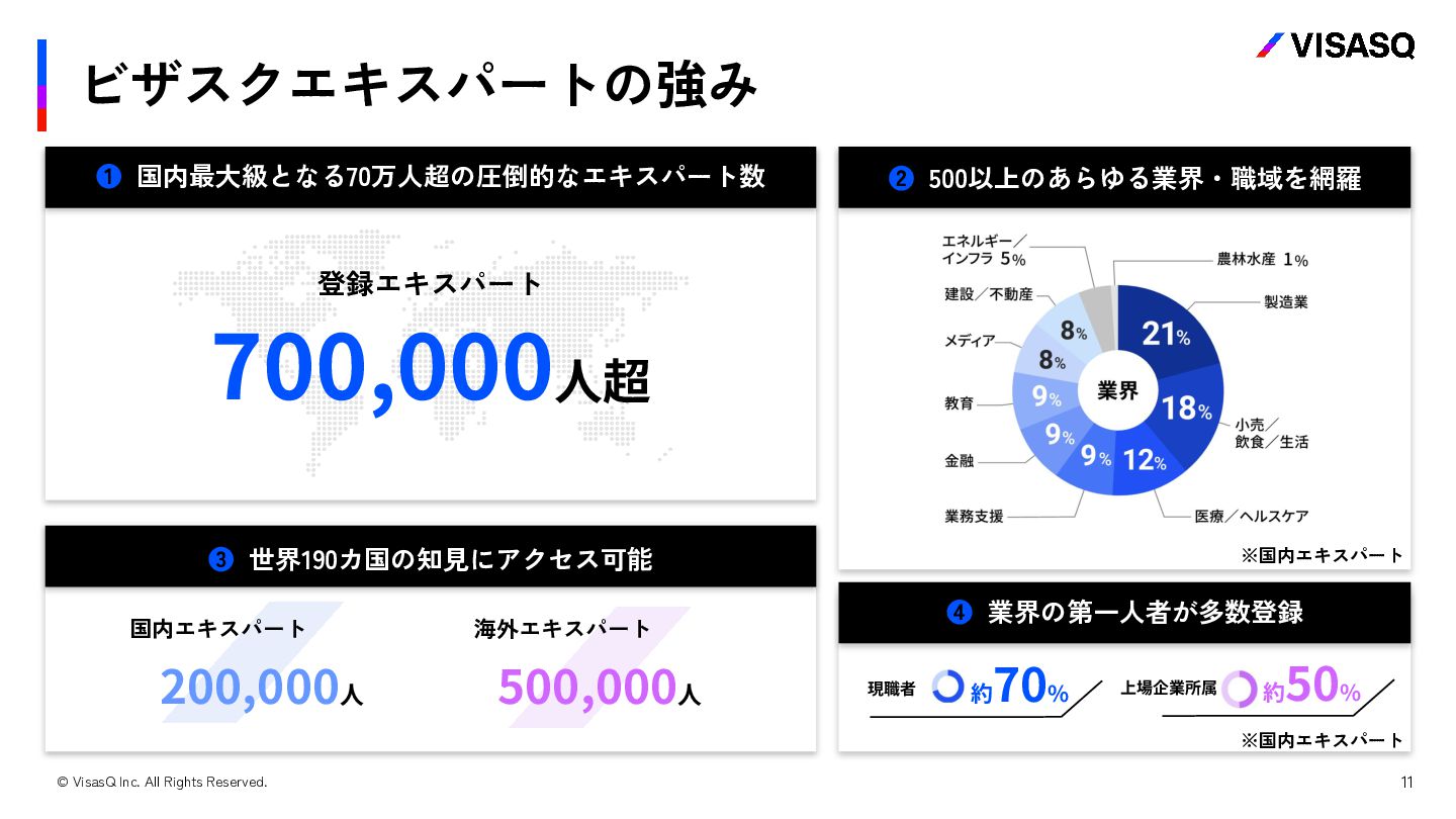 11 © VisasQ Inc. All Rights Reserved. ビザスクエキスパートの強み 登録エキスパート 700,000⼈超