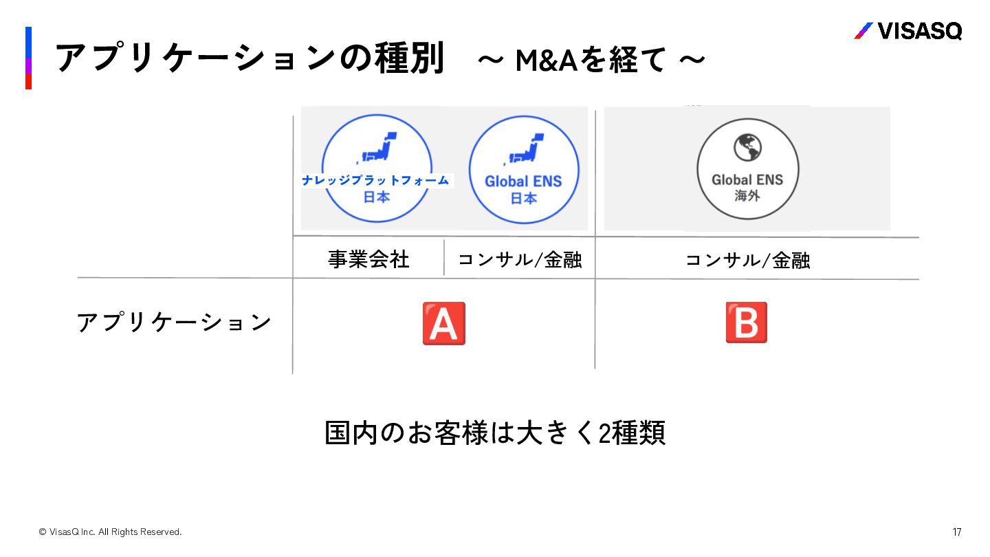 🅰 🅱 アプリケーションの種別 〜 M&Aを経て 〜 コンサル/金融 ナレッジプラットフォーム アプリケーション