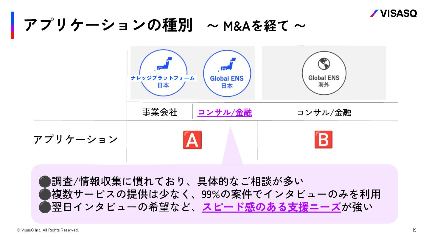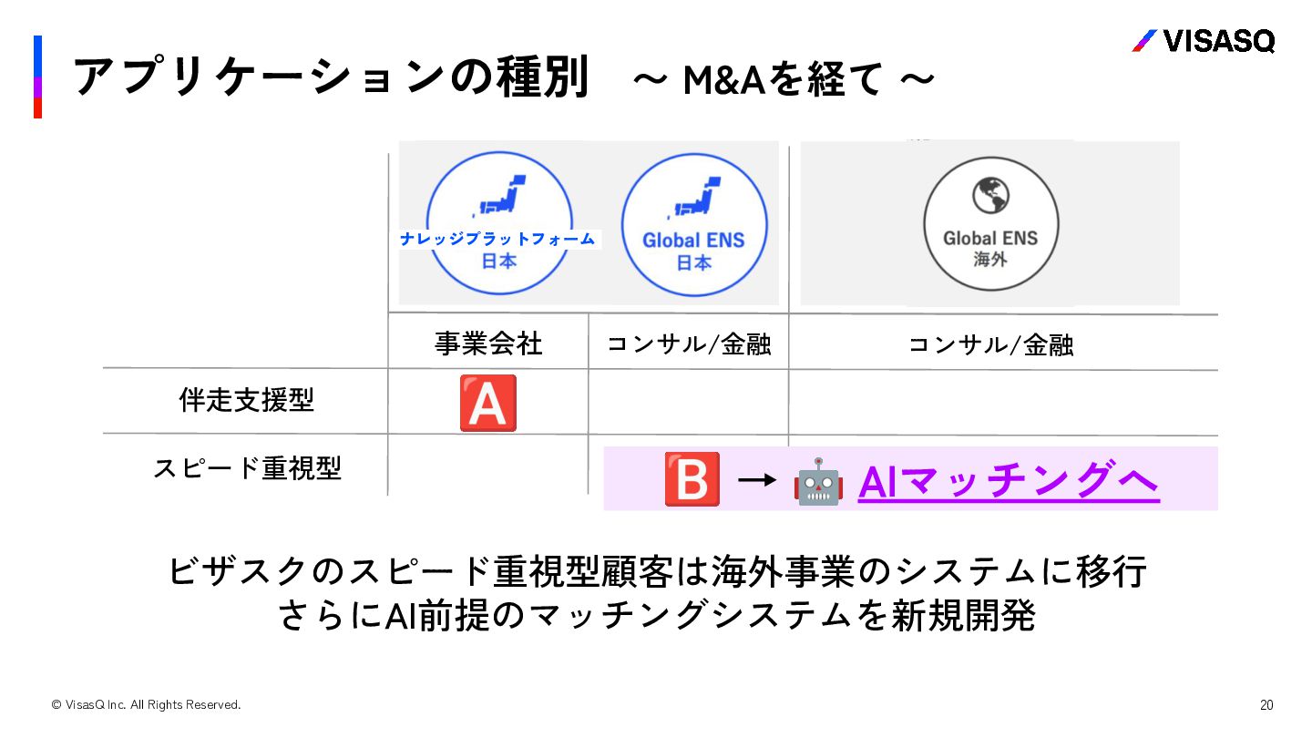 19 © VisasQ Inc. All Rights Reserved. 事業会社 アプリケーションの種別 〜 M&Aを経て