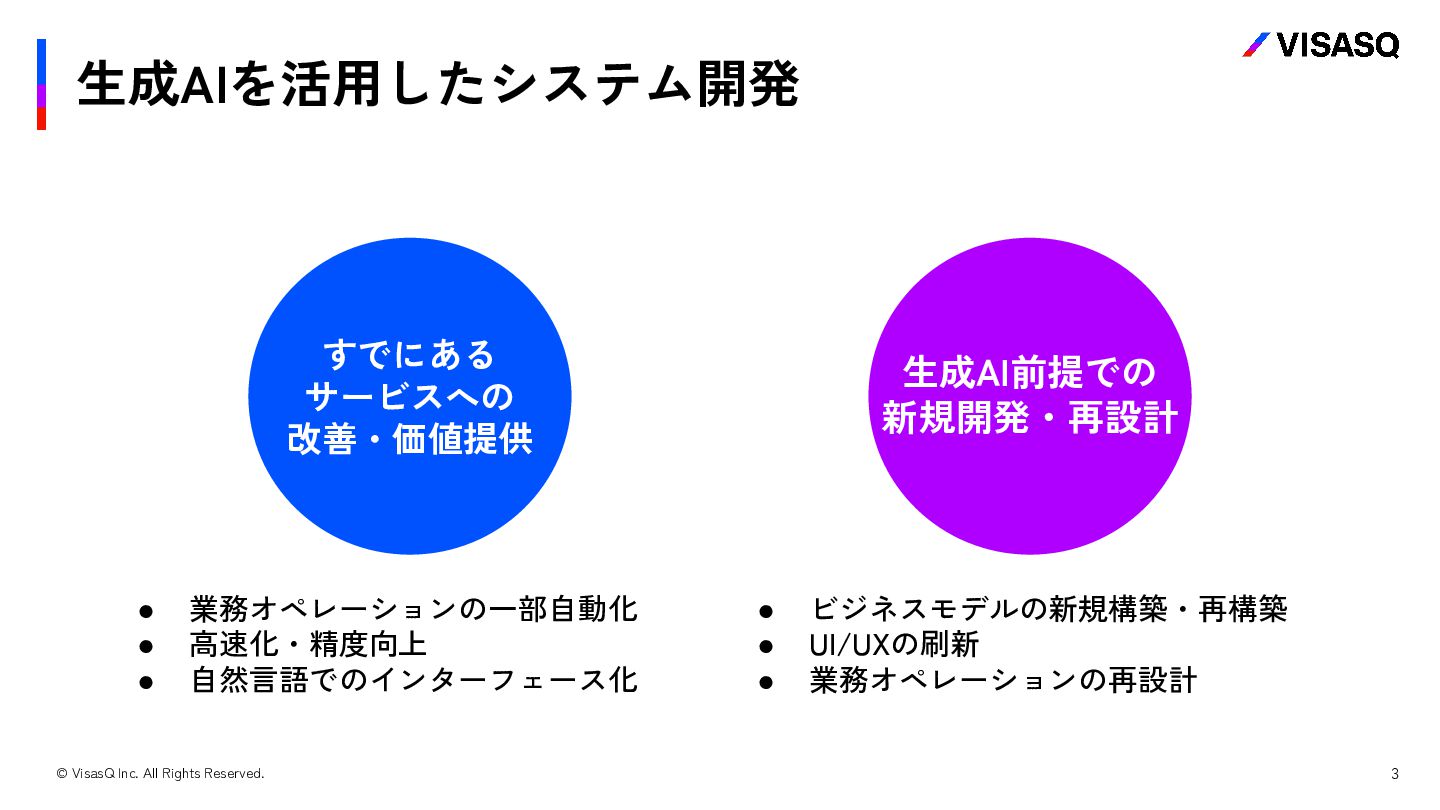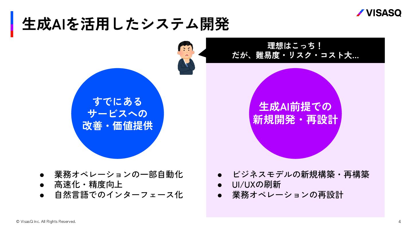 3 © VisasQ Inc. All Rights Reserved. 生成AIを活用したシステム開発 すでにある サービスへの