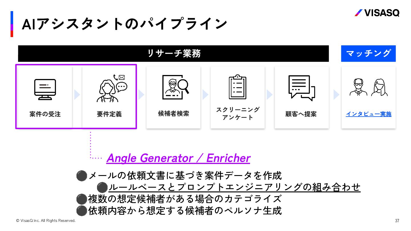 36 © VisasQ Inc. All Rights Reserved. AIアシスタントのパイプライン 案件の受注 要件定義