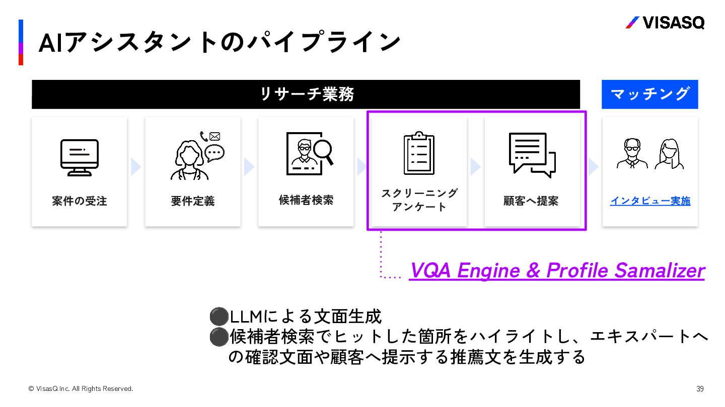 38 © VisasQ Inc. All Rights Reserved. AIアシスタントのパイプライン 案件の受注 要件定義