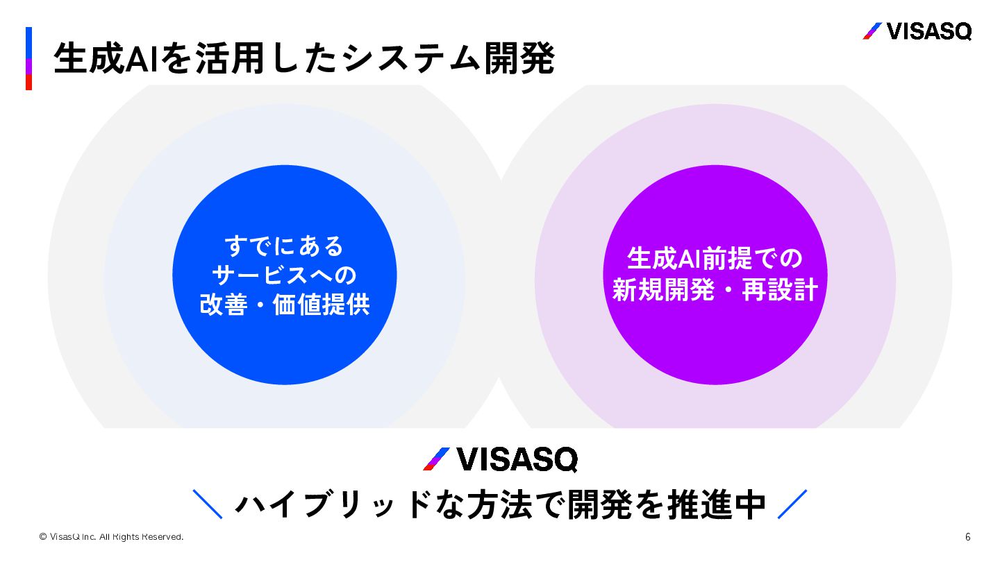 5 © VisasQ Inc. All Rights Reserved. 生成AIを活用したシステム開発 すでにある サービスへの