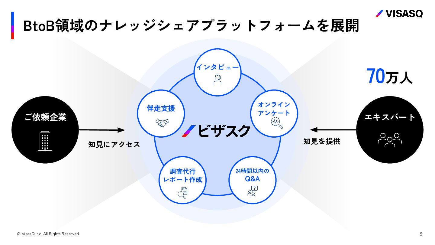 9 © VisasQ Inc. All Rights Reserved. BtoB領域のナレッジシェアプラットフォームを展開 知見にアクセス 知見を提供