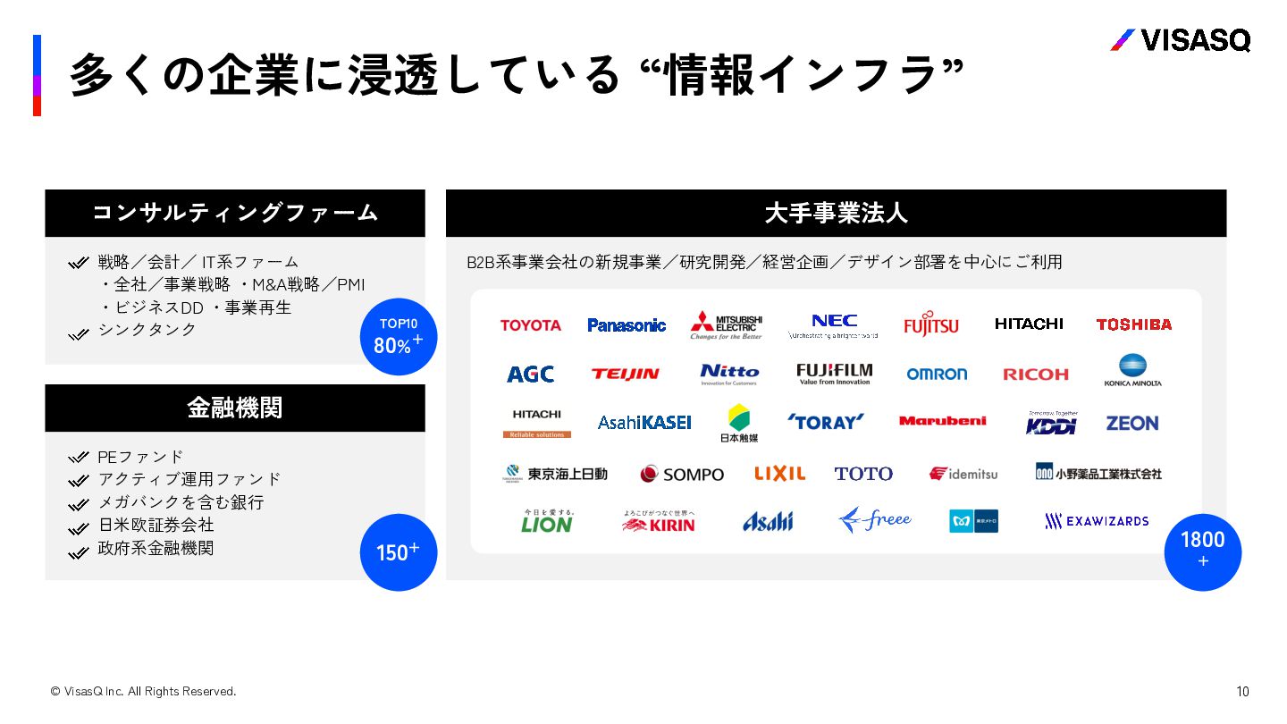 10 © VisasQ Inc. All Rights Reserved. 多くの企業に浸透している “情報インフラ” 大手事業法人