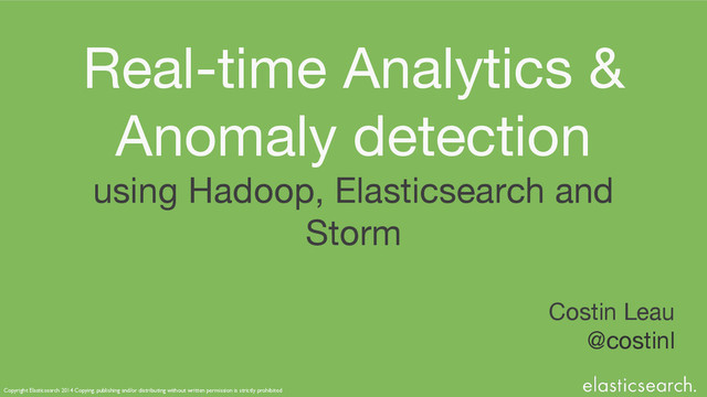 Finding relevant information fast has always been a challenge, even more so in today’s growing “oceans” of data. This talk explores the area of real-time analytics and anomalies detection (in particular credit card fraud) using Apache Hadoop as a data platform, Apache Storm for real-time computation, data ingestion and orchestration and Elasticsearch for performing advanced real-time searches. This session will focus on the architectural challenges of bridging batch and real-time systems and how to overcome them, keeping a close eye on performance and scalability. We will cover the architectural topics such as partition strategies, data locality, integration patterns and multi-tenancy.