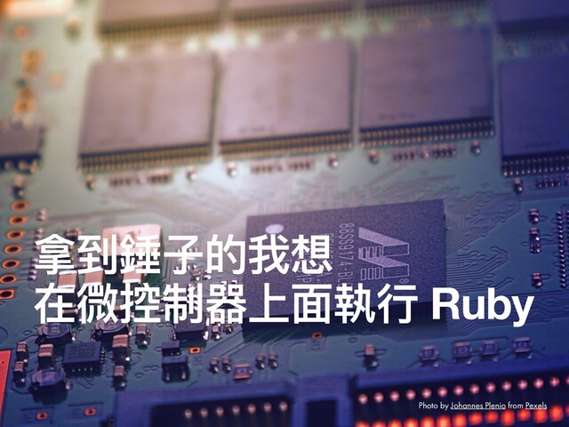 拿到錘⼦的我想 在微控制器上⾯執⾏ Ruby Photo by Johannes Plenio from Pexels