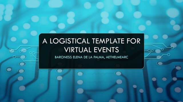 The event steward for Æthelmearc Æcademy shares her template for ensuring a smooth virtual event - what staff you need, what setup and prep work is required, some pitfalls and cautionary tales...and most importantly how to make sure everyone has fun!