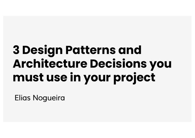 - Configuration management: because we don't have much time to change the code all the time we can use a proper configuration approach to avoid changes in the codebase