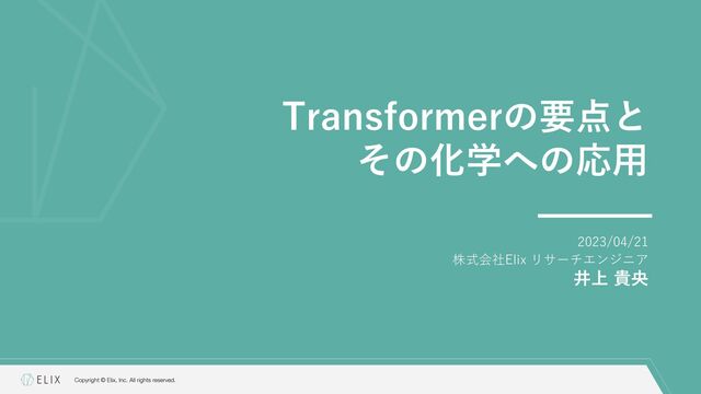 Elix, GTCヘルスケアフォローアップウェビナー, Transformerの要点とその化学...
