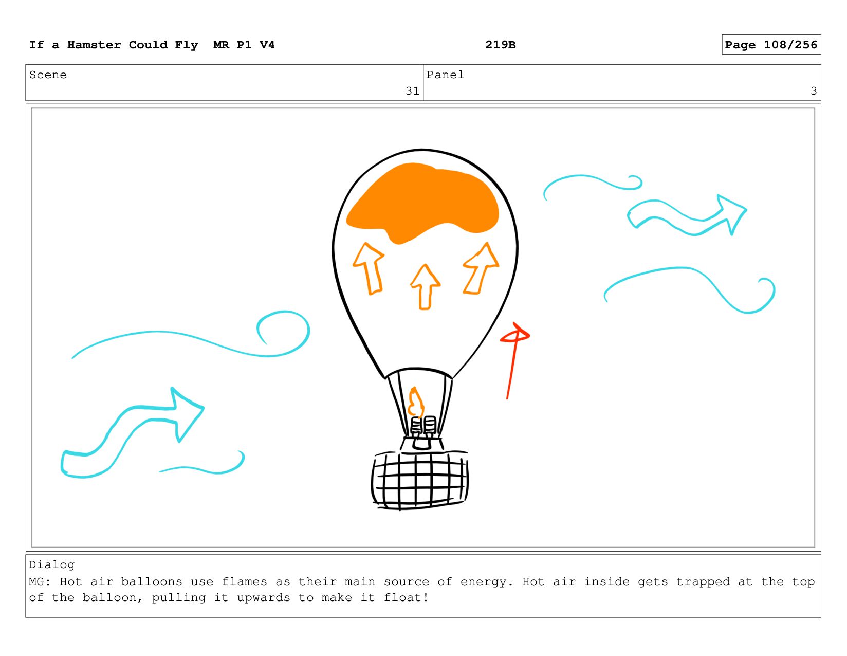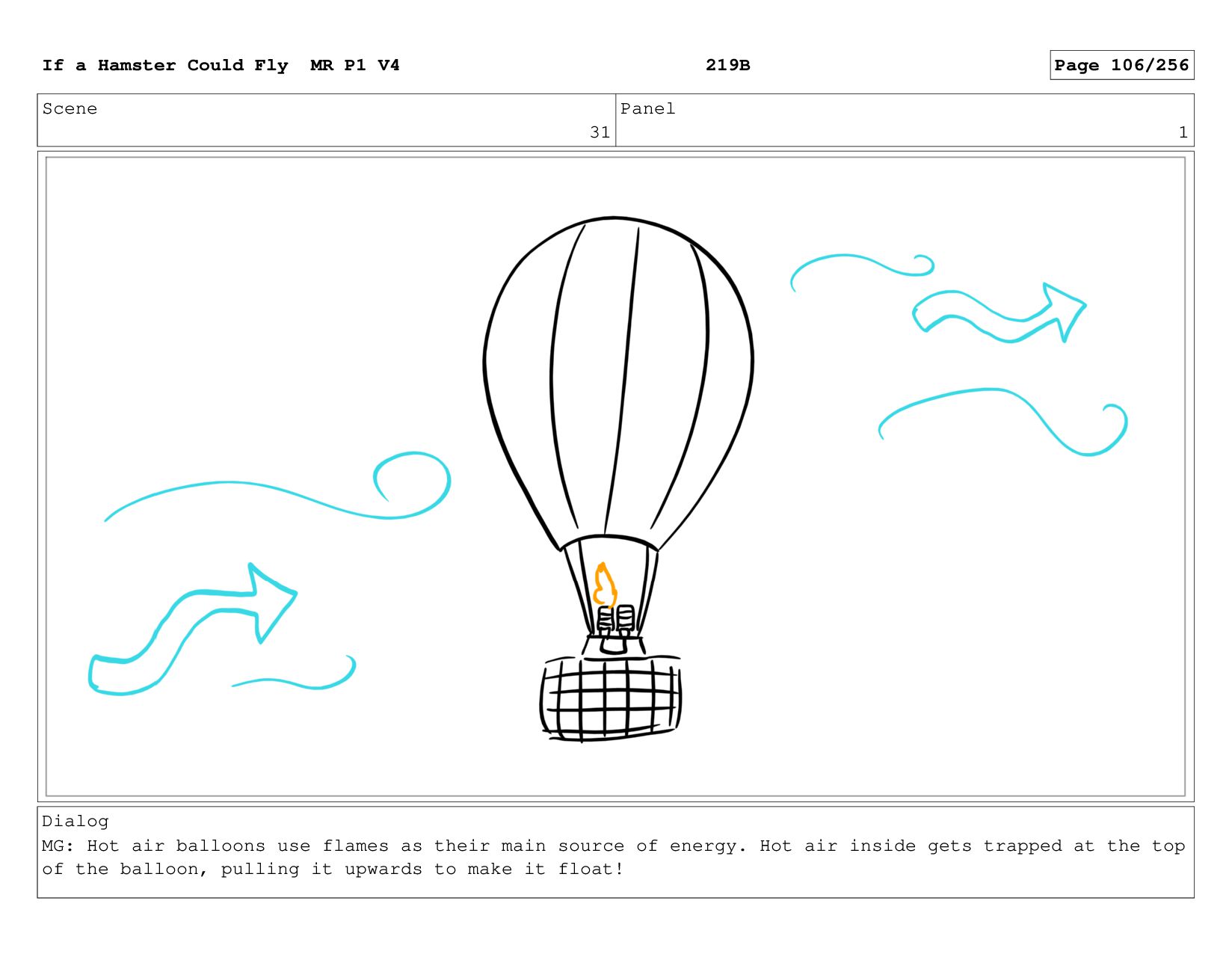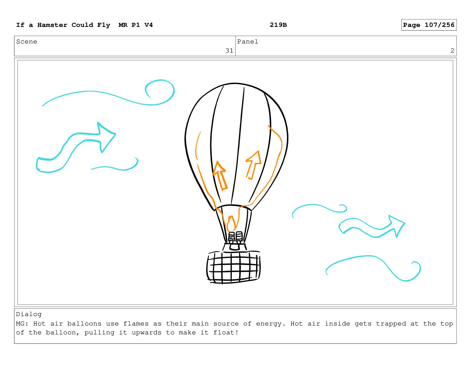 flames as their main source of energy. Hot air inside gets trapped at the top of the balloon, pulling it upwards to make it float! If a Hamster Could Fly MR P1 V4 Page 106/256 219B