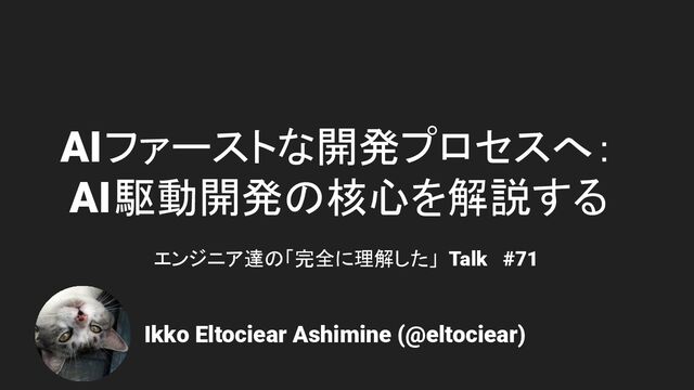 AIファーストな開発プロセスへ: AI駆動開発の核心を解説する Ikko Eltociear Ashimine (@eltociear) エンジニア達の「完全に理解した」 Talk #71