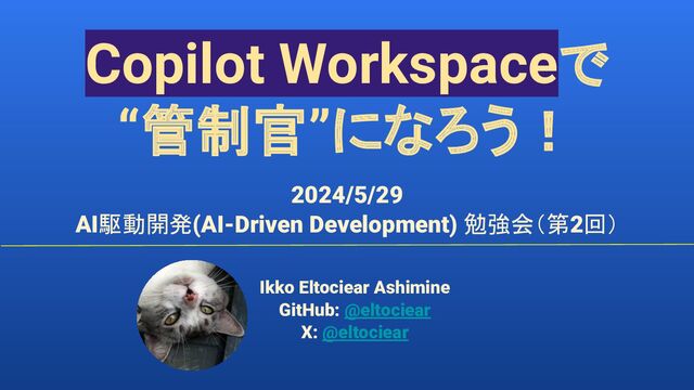 Copilot Workspaceで “管制官”になろう! Ikko Eltociear Ashimine GitHub: @eltociear X: @eltociear