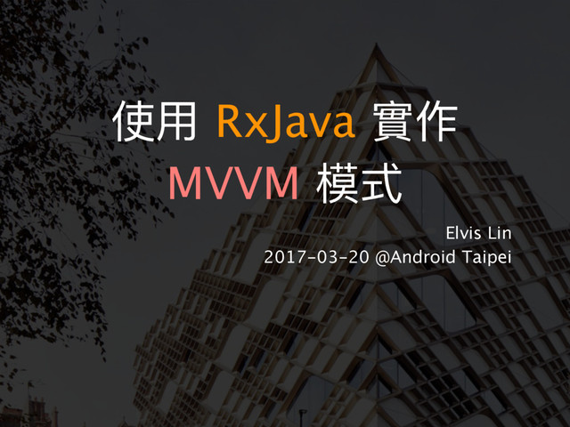 使⽤用 RxJava 實作 MVVM 模式 Elvis Lin 2017-03-20 @Android