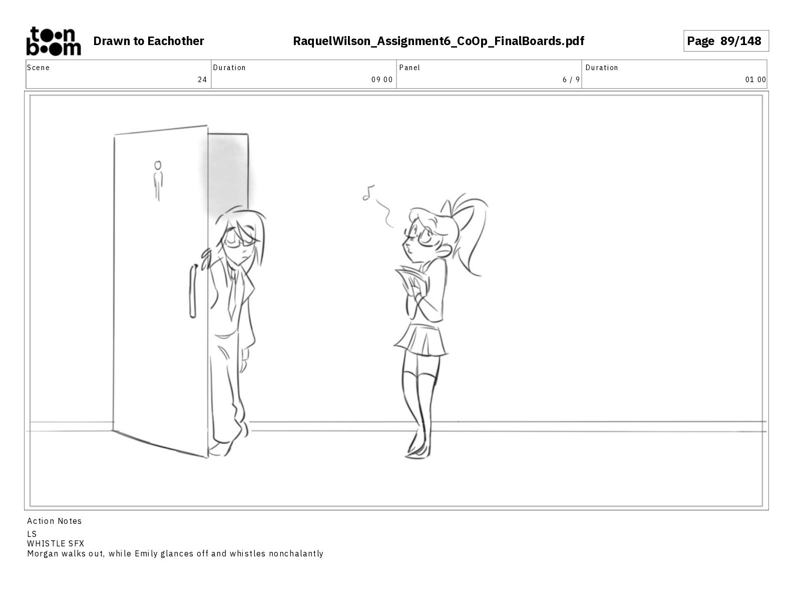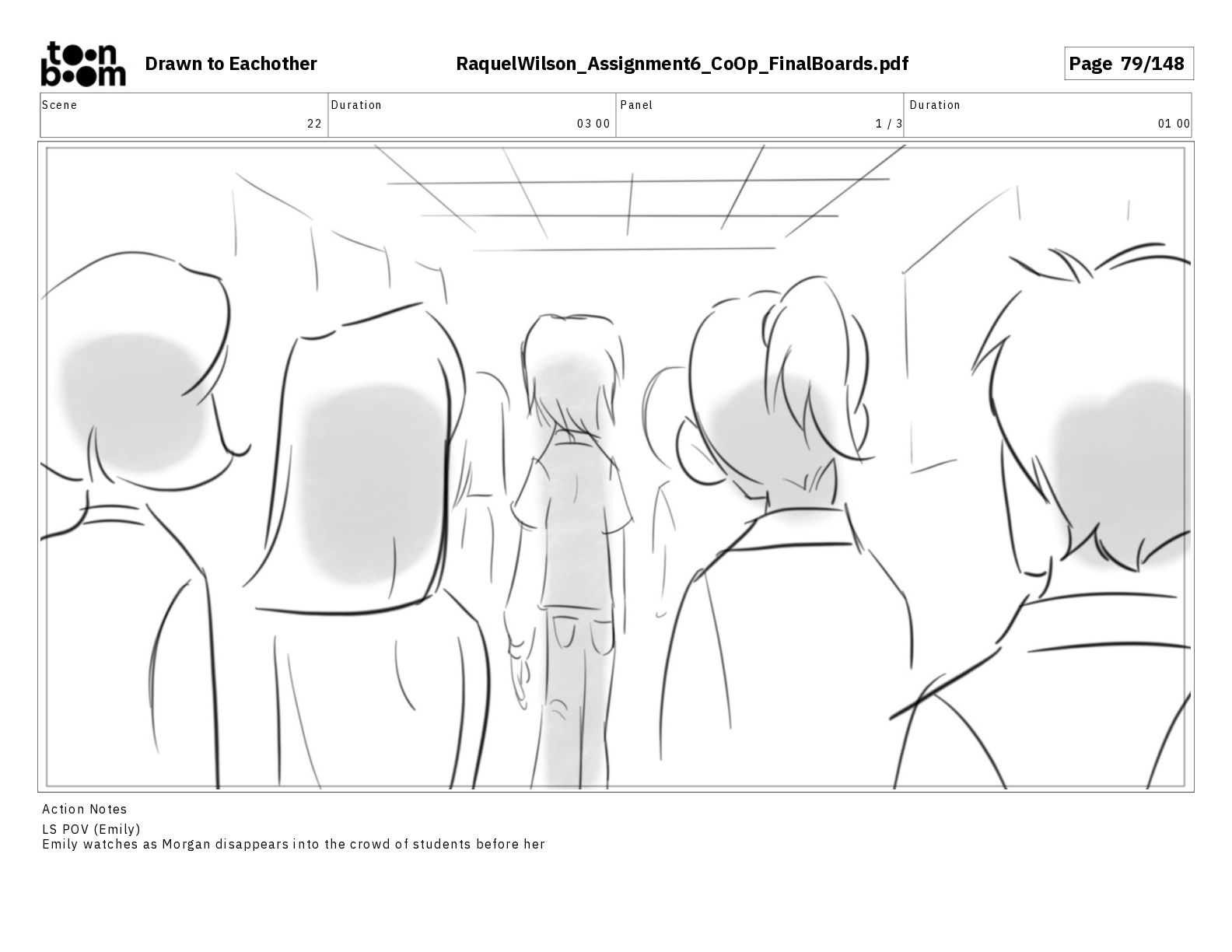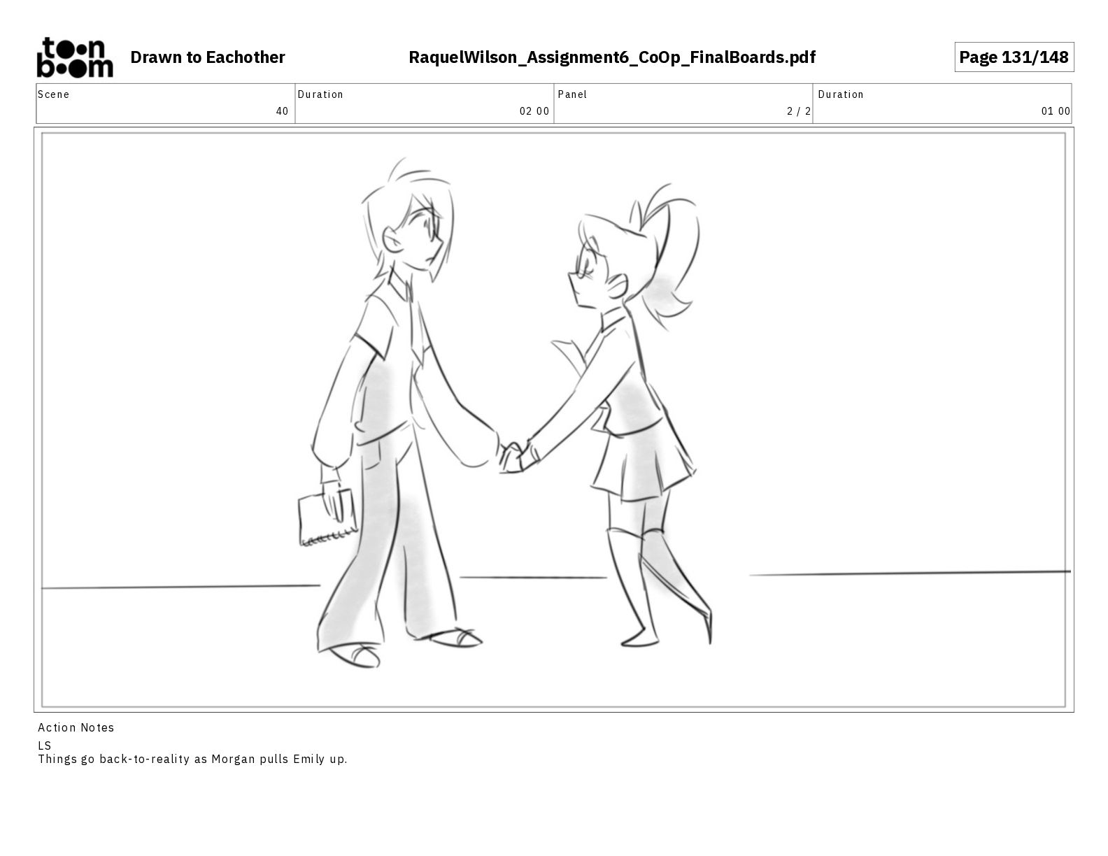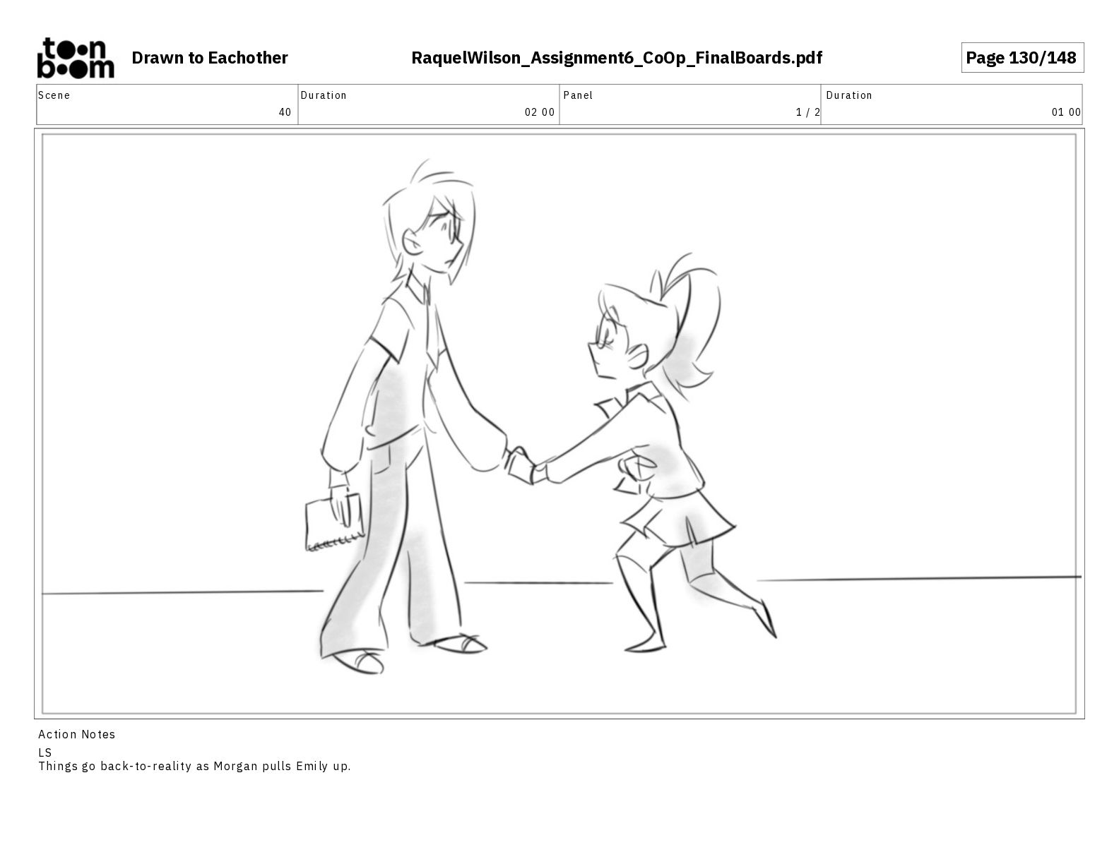 01 00 Action Notes LS Morgan turns back to Emily Drawn to Eachother RaquelWilson_Assignment6_CoOp_FinalBoards.pdf Page 125/148