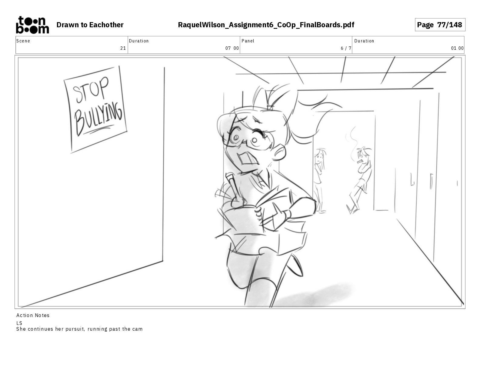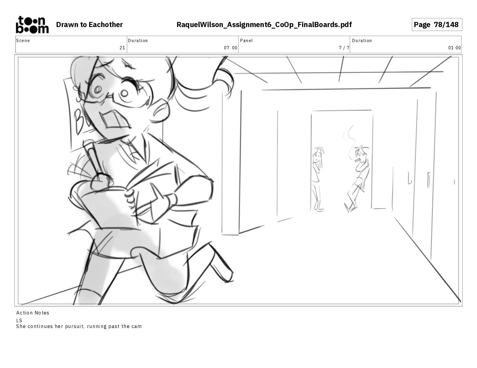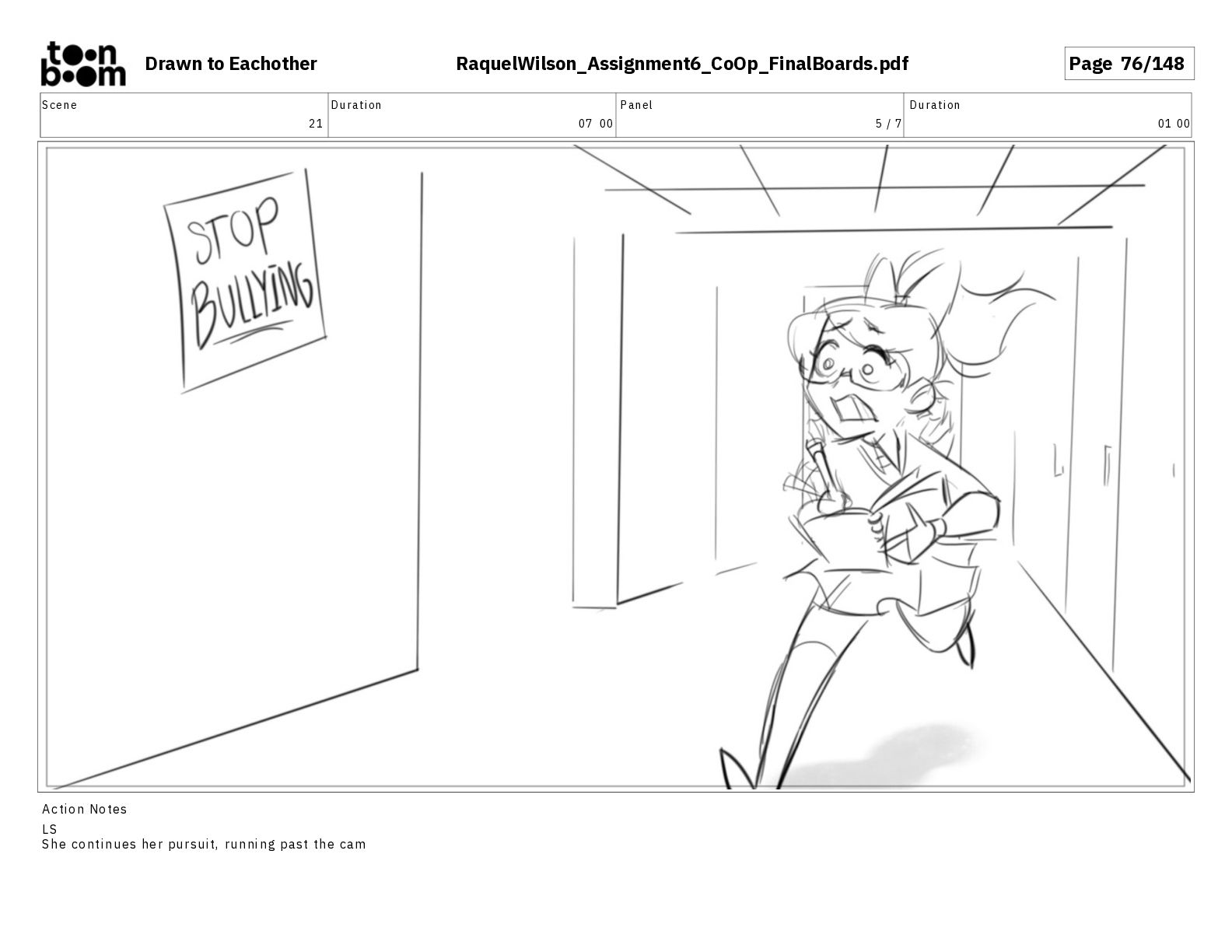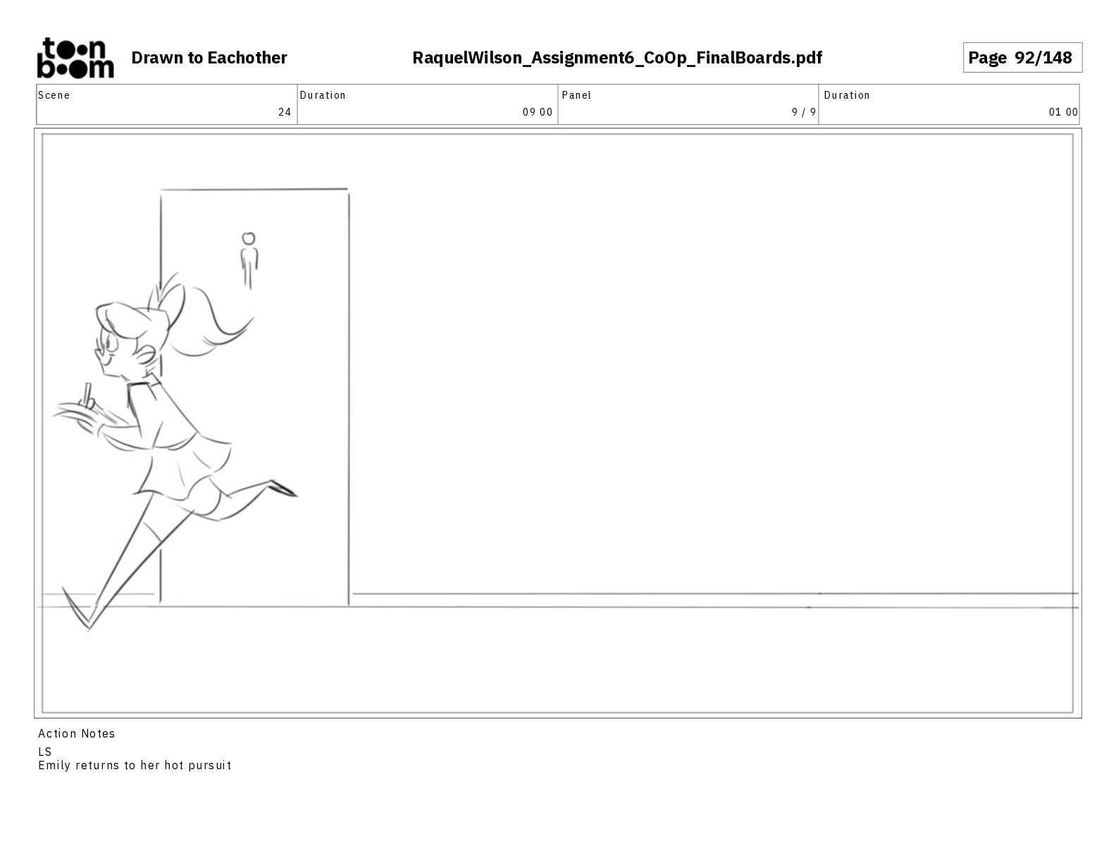 01 00 Action Notes MS She cringes, trying to fix her additions Drawn to Eachother RaquelWilson_Assignment6_CoOp_FinalBoards.pdf Page 22/148