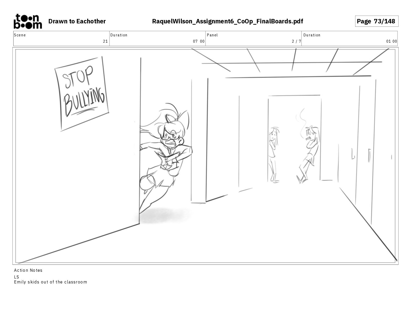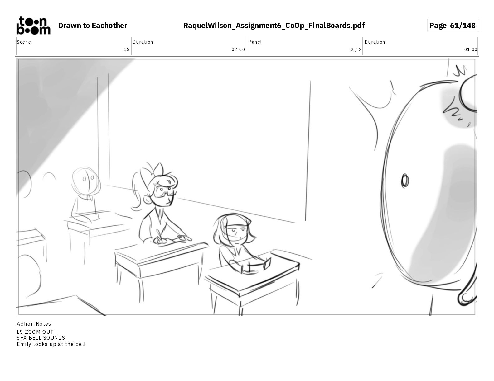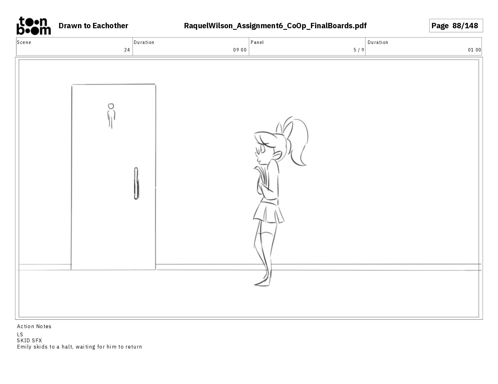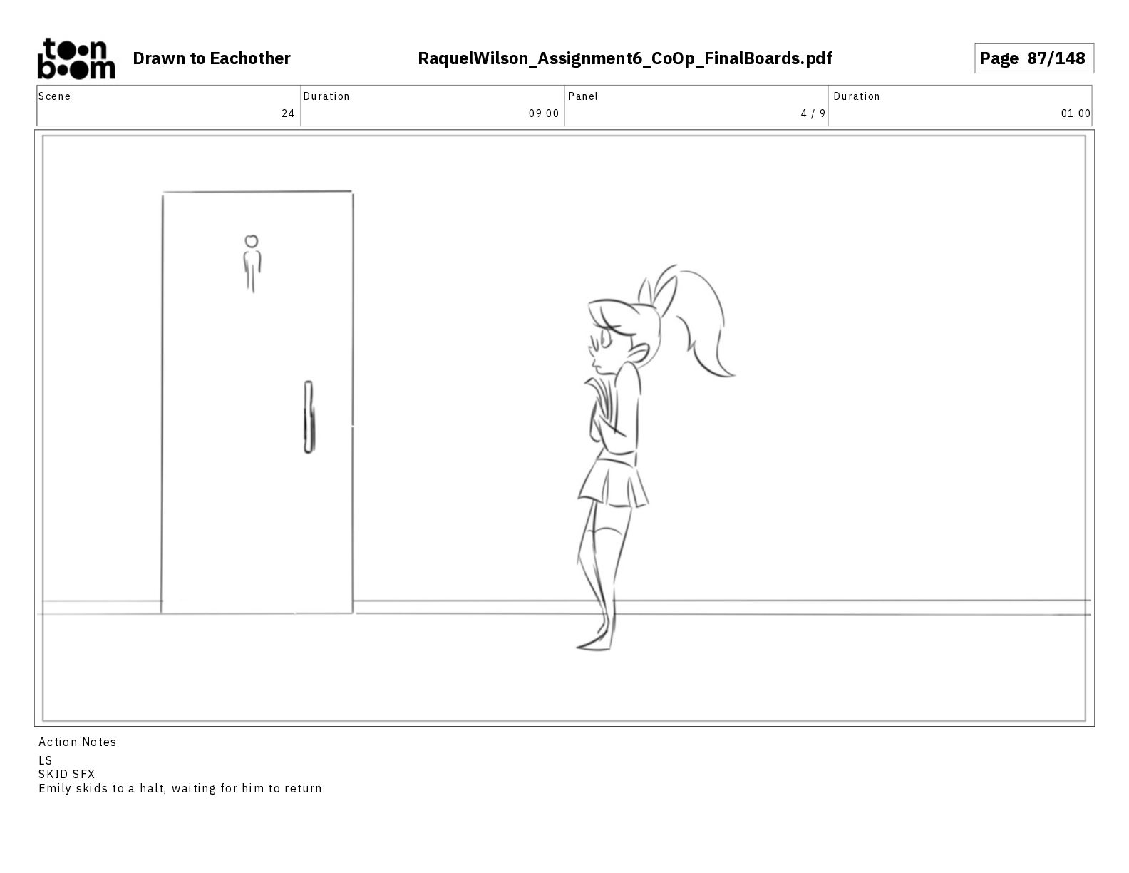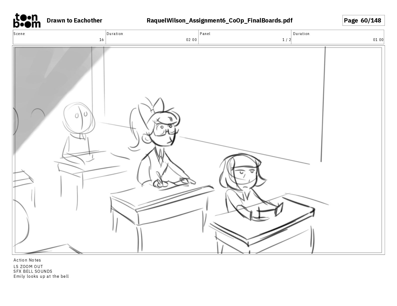 01 00 Action Notes MS DOOR CREAKING SFX Emily perks up, peering at the classroom door through her fingers Drawn to Eachother RaquelWilson_Assignment6_CoOp_FinalBoards.pdf Page 29/148