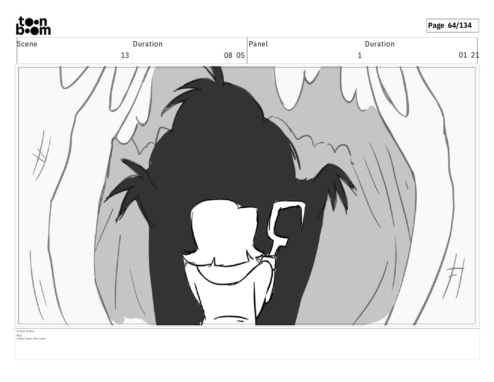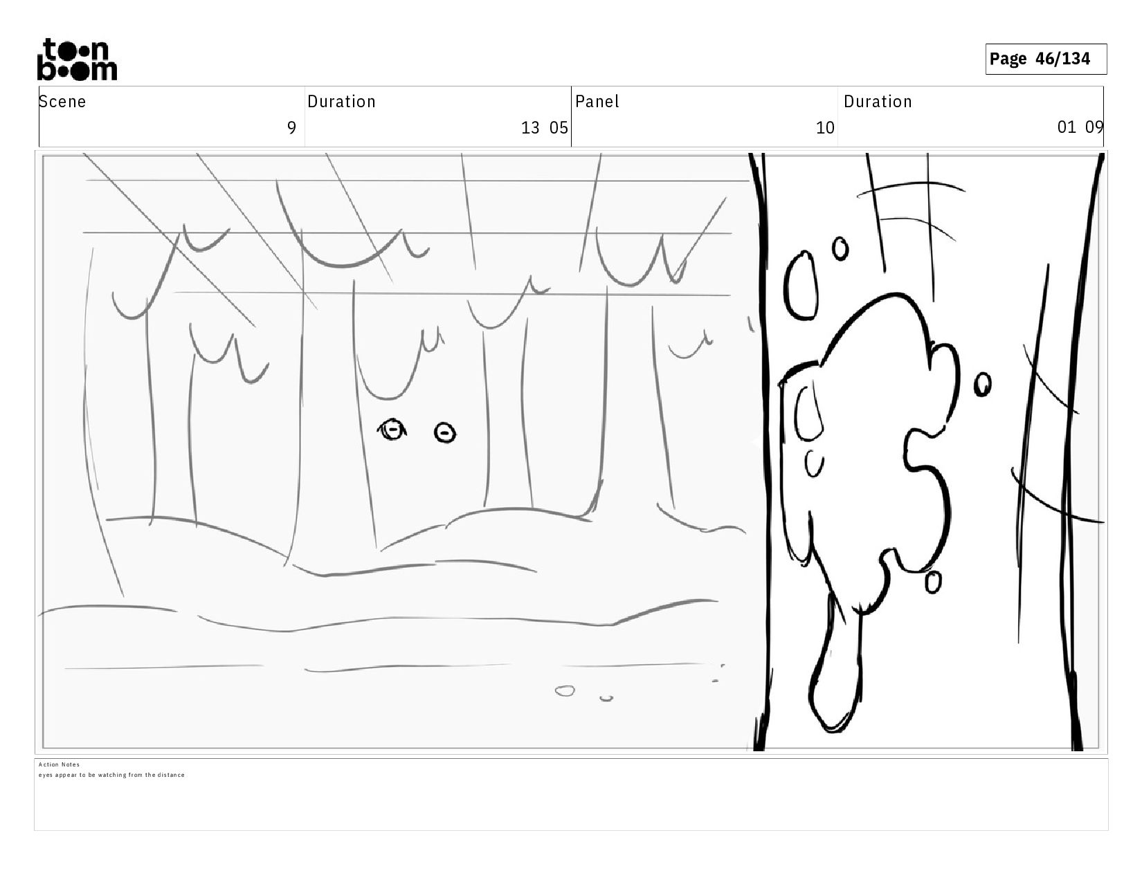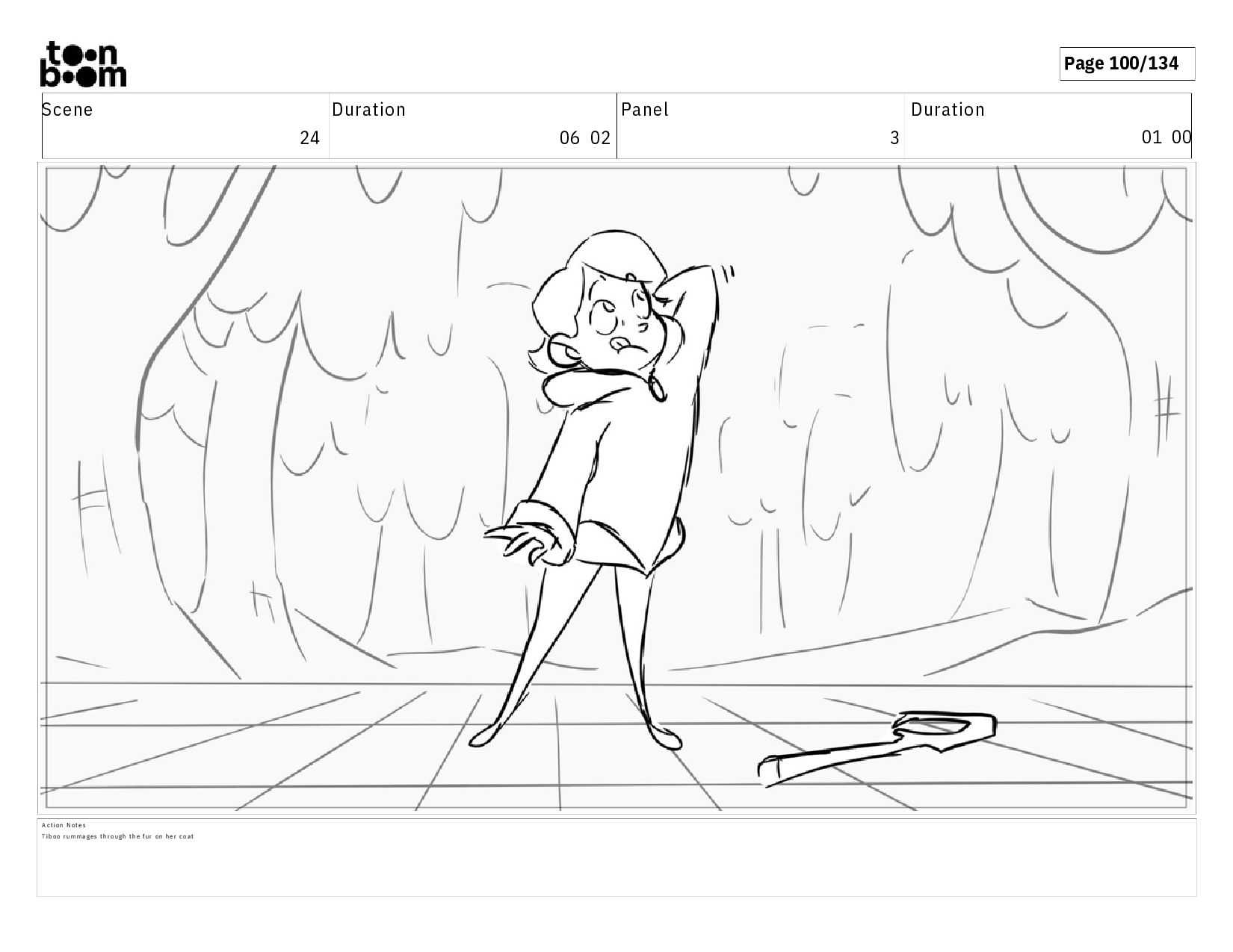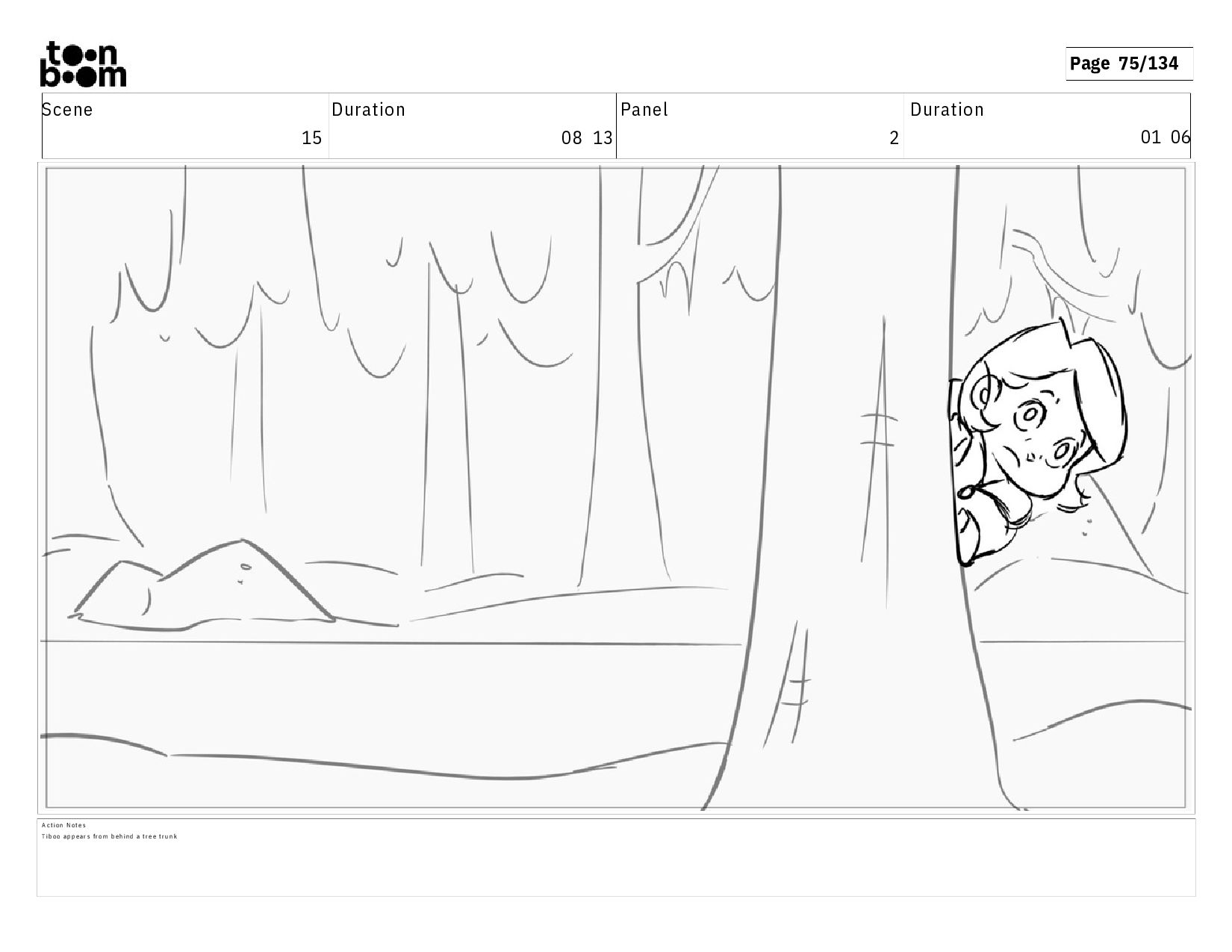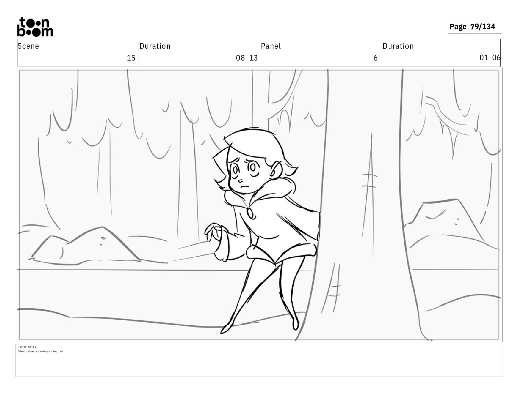 02 07 A c t i o n N o t e s E S o f t h e e n t r a n c e o f t h e f o r e s t . T I B O O s t a n d s b e f o r e i t , b a c k t o t h e a u d i e n c e