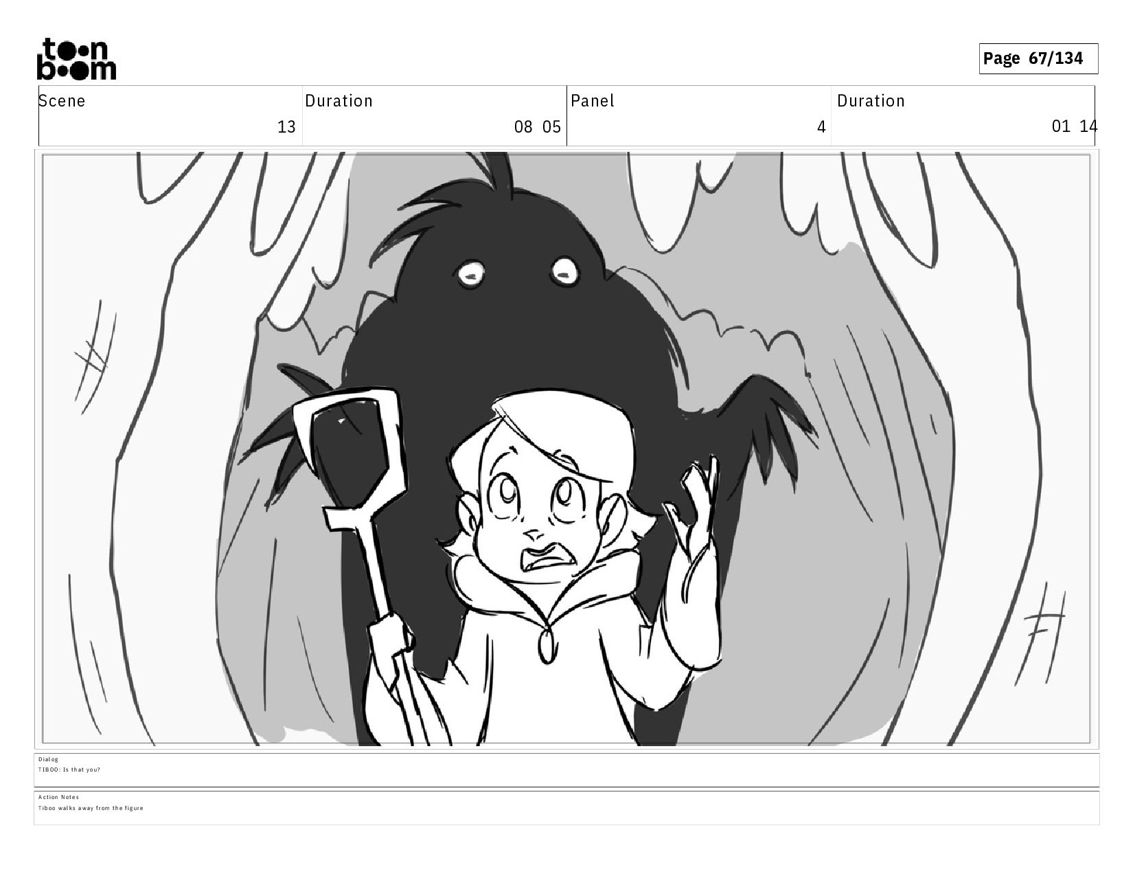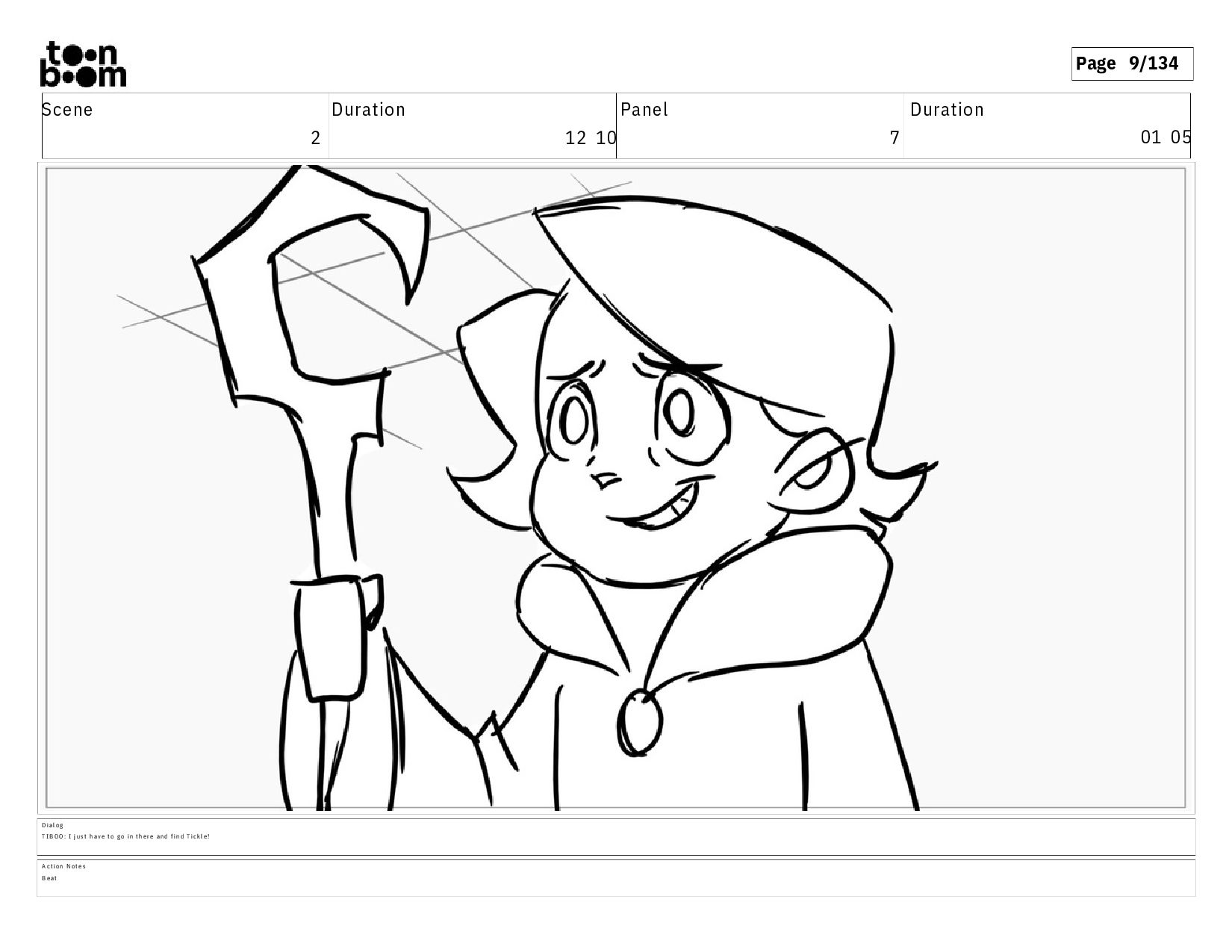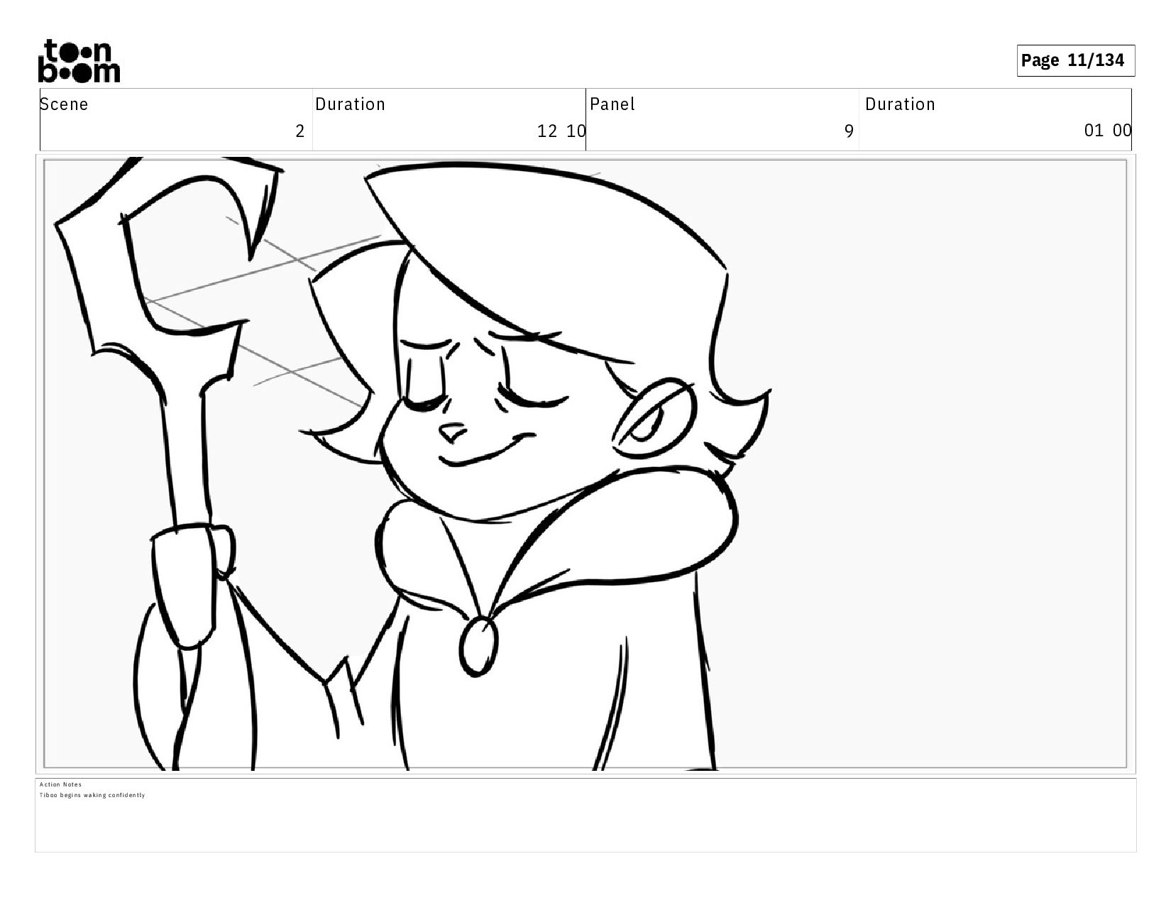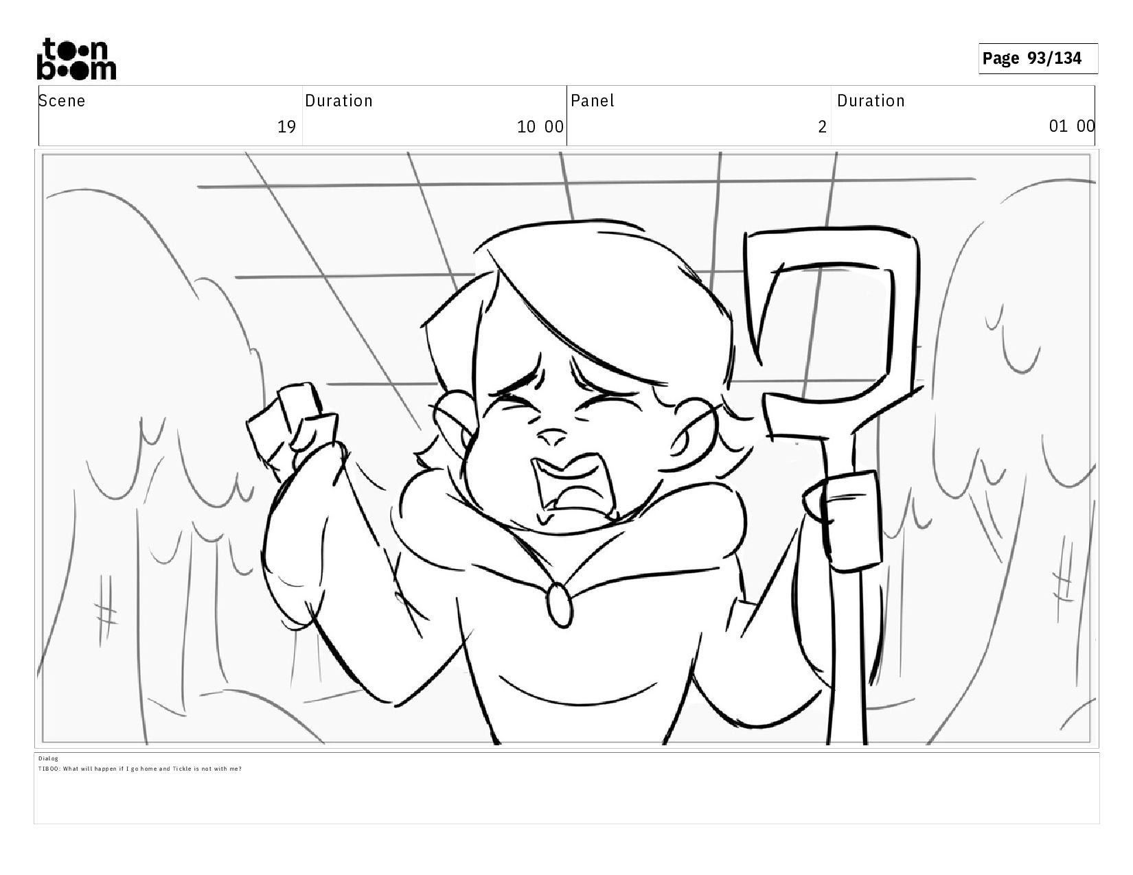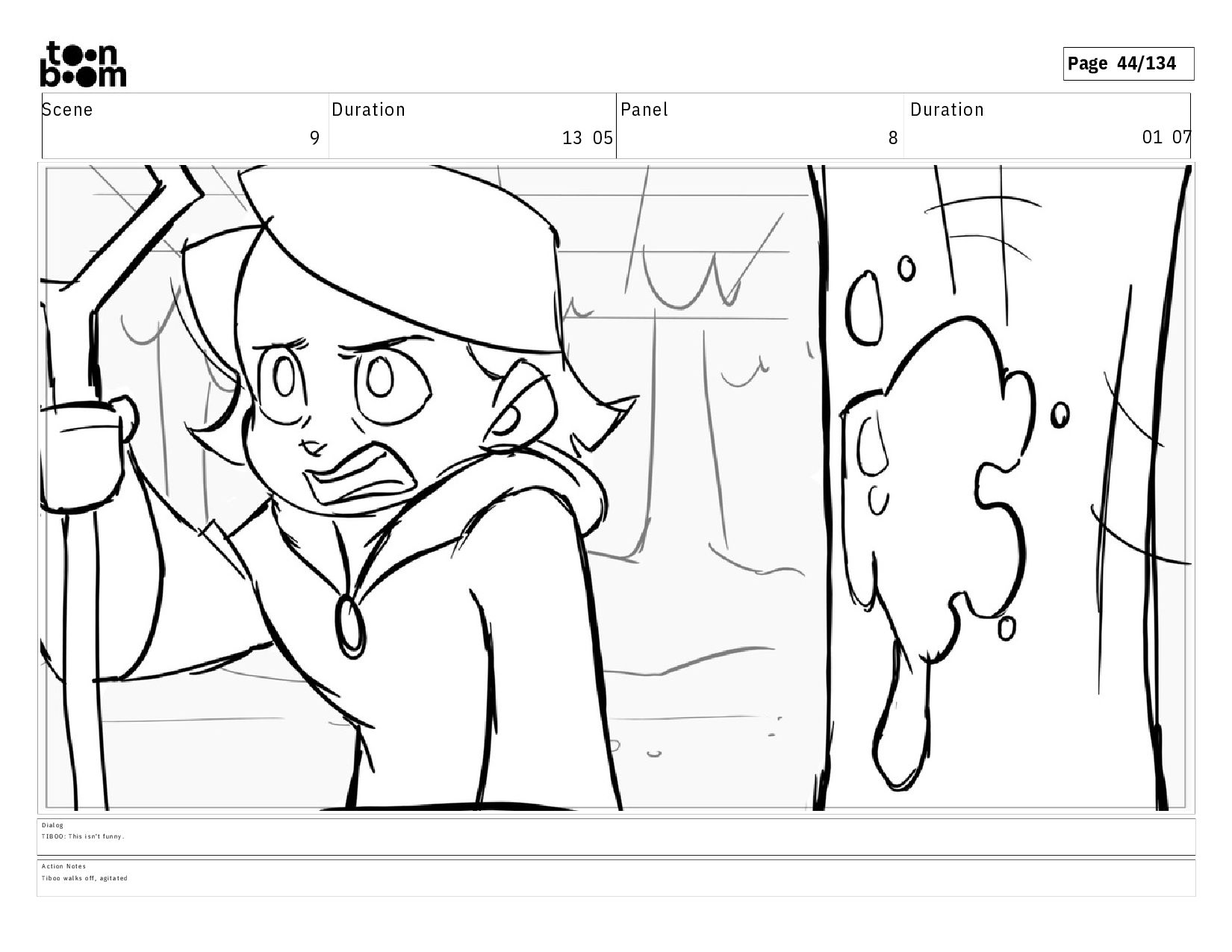 01 16 D i a l o g T I B O O : I h a v e a n i d e a ! A c t i o n N o t e s T i b o o h a s a c l e v e r e x p r e s s i o n , i m m e d i a t e l y d r o p p i n g h e r w a l k i n g s t i c k