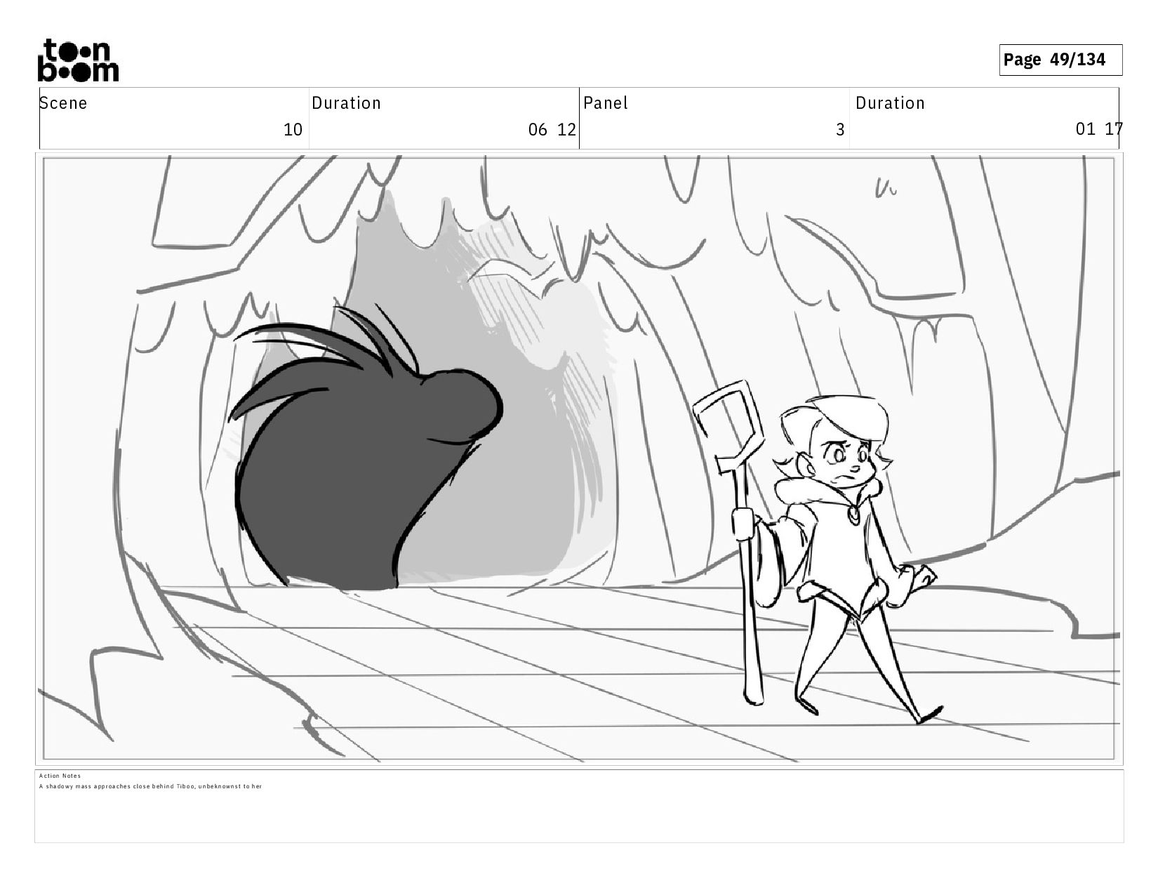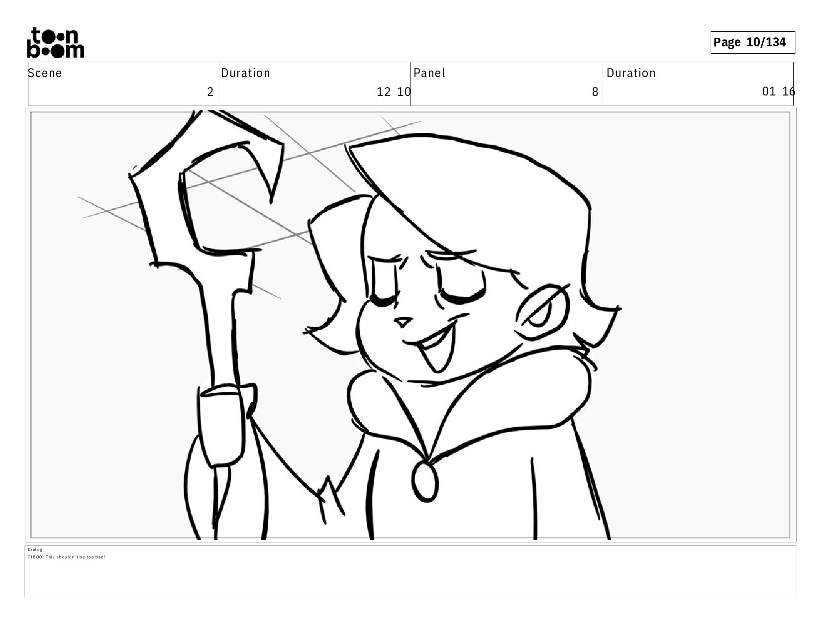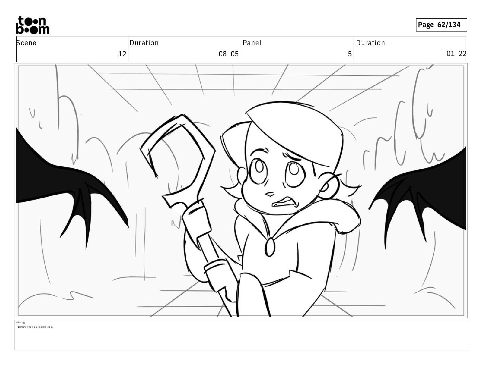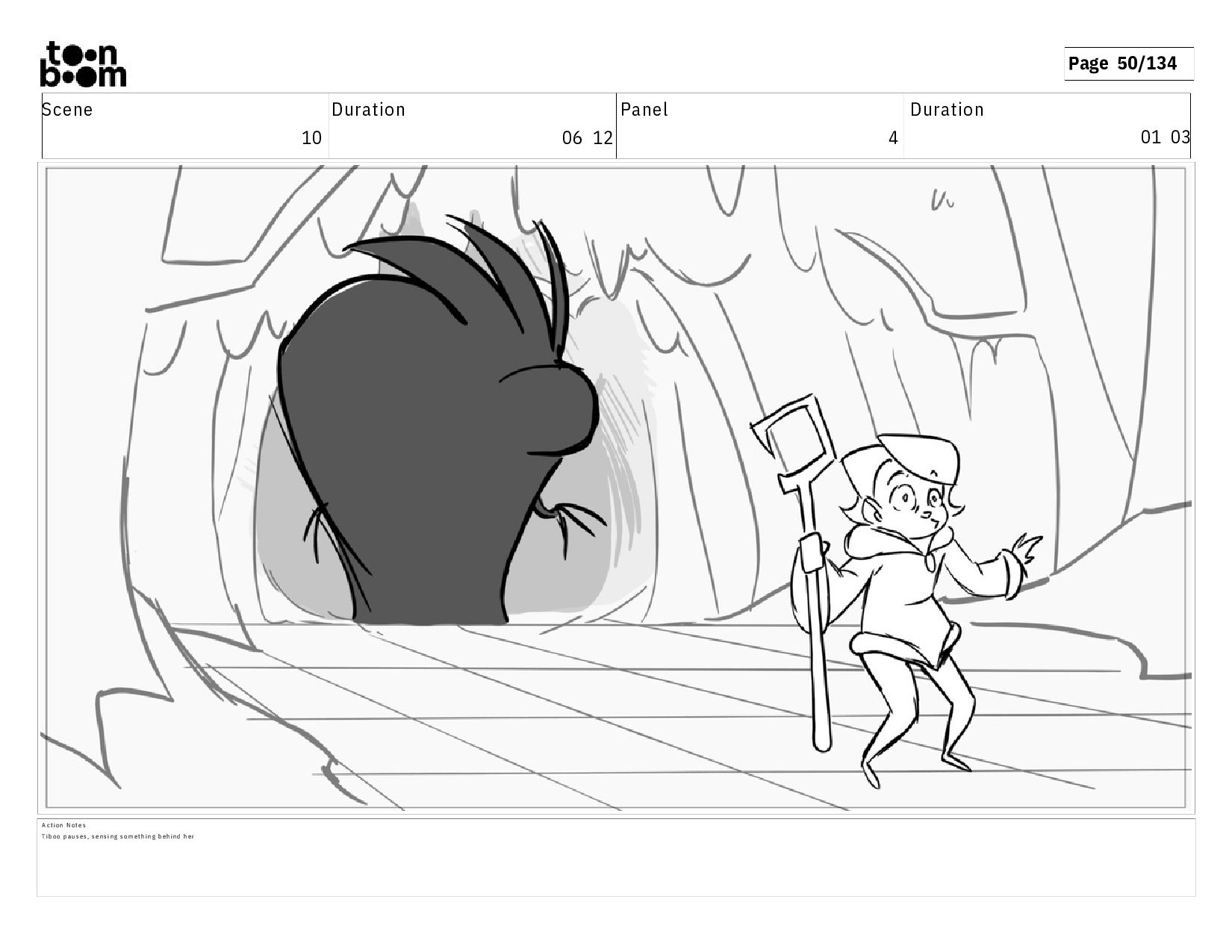 01 16 D i a l o g T I B O O : I h a v e a n i d e a ! A c t i o n N o t e s T i b o o h a s a c l e v e r e x p r e s s i o n , i m m e d i a t e l y d r o p p i n g h e r w a l k i n g s t i c k