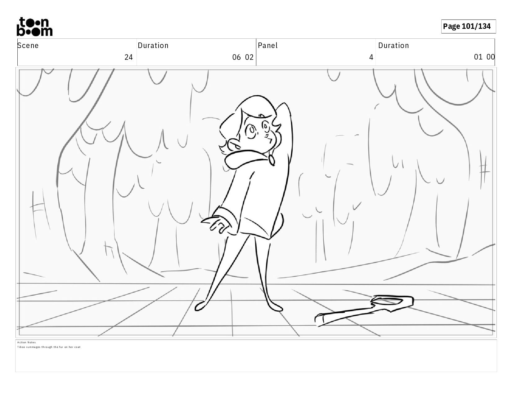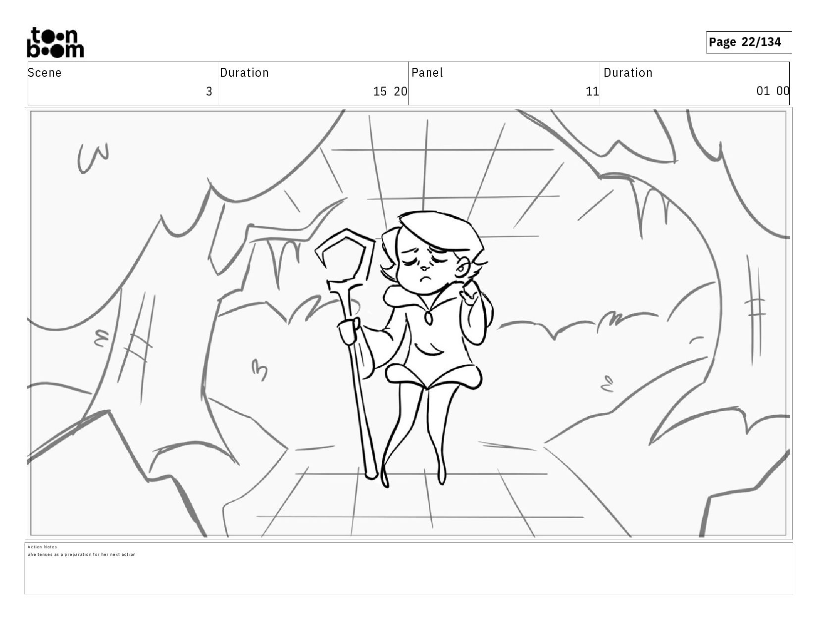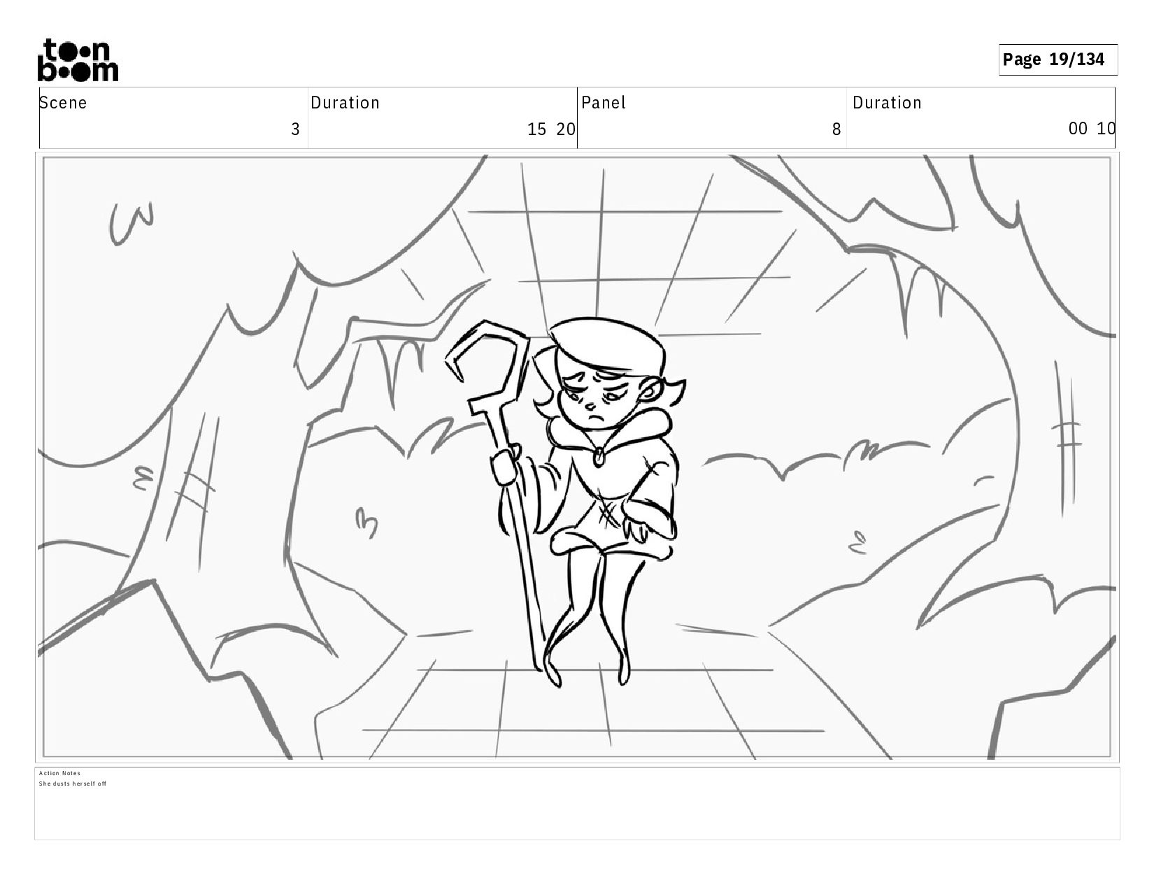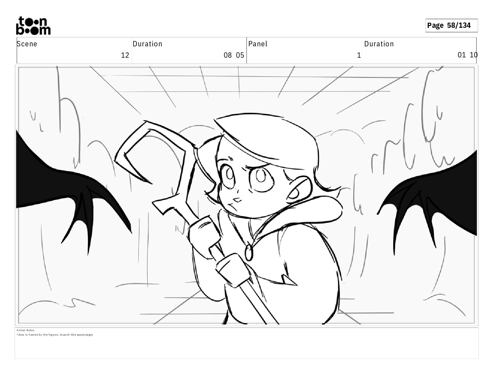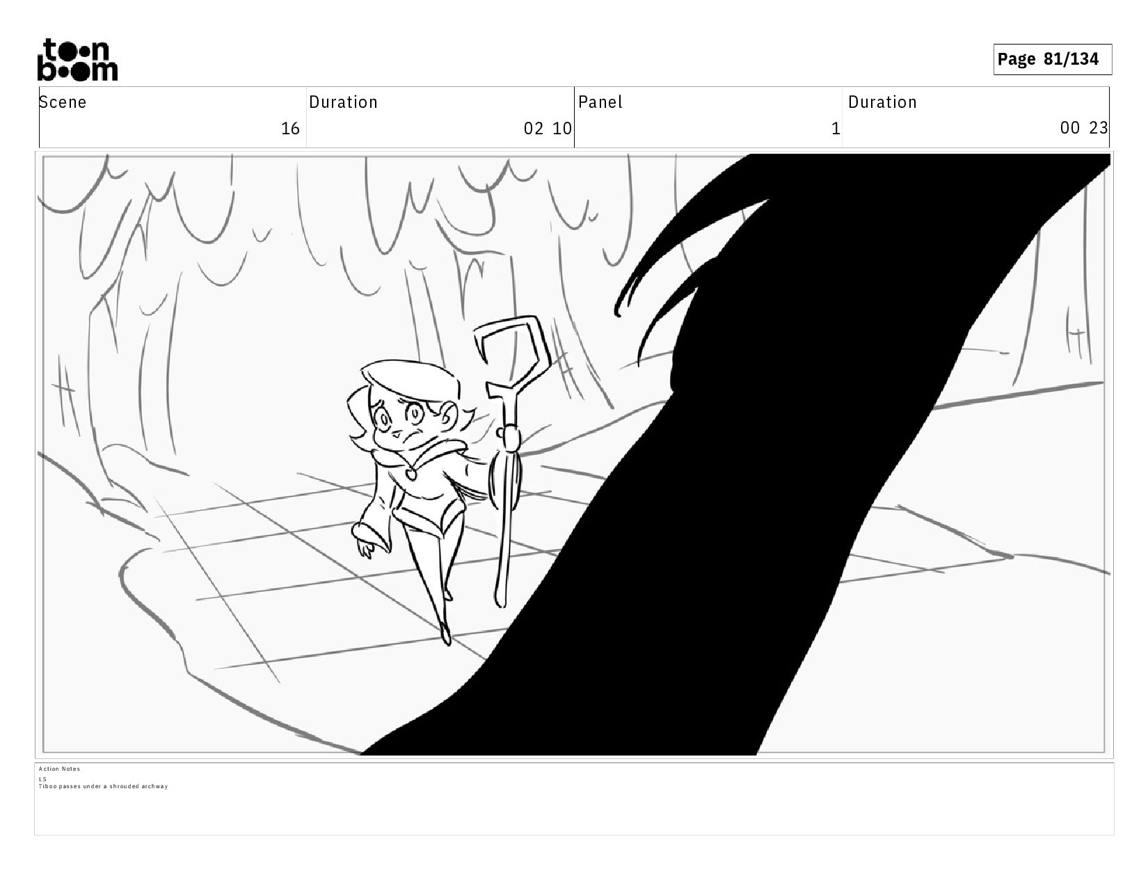 01 16 D i a l o g T I B O O : I h a v e a n i d e a ! A c t i o n N o t e s T i b o o h a s a c l e v e r e x p r e s s i o n , i m m e d i a t e l y d r o p p i n g h e r w a l k i n g s t i c k