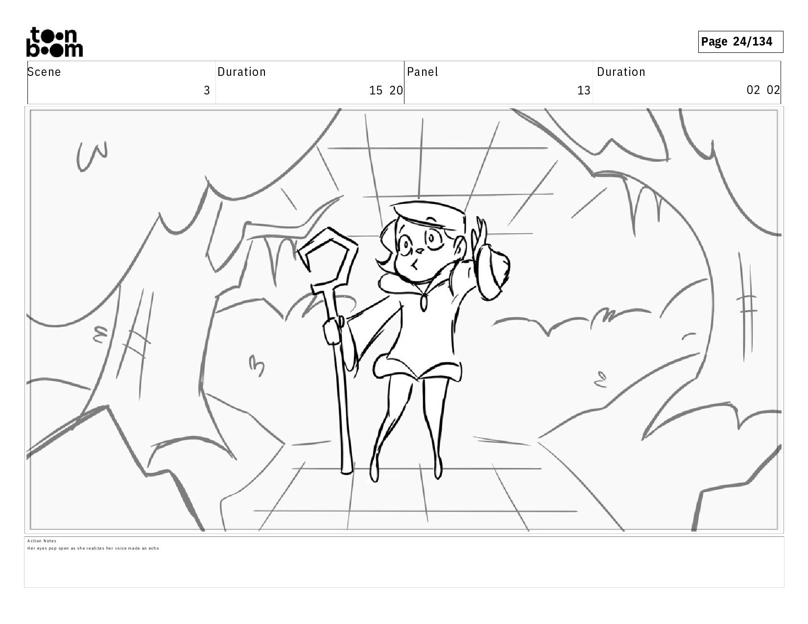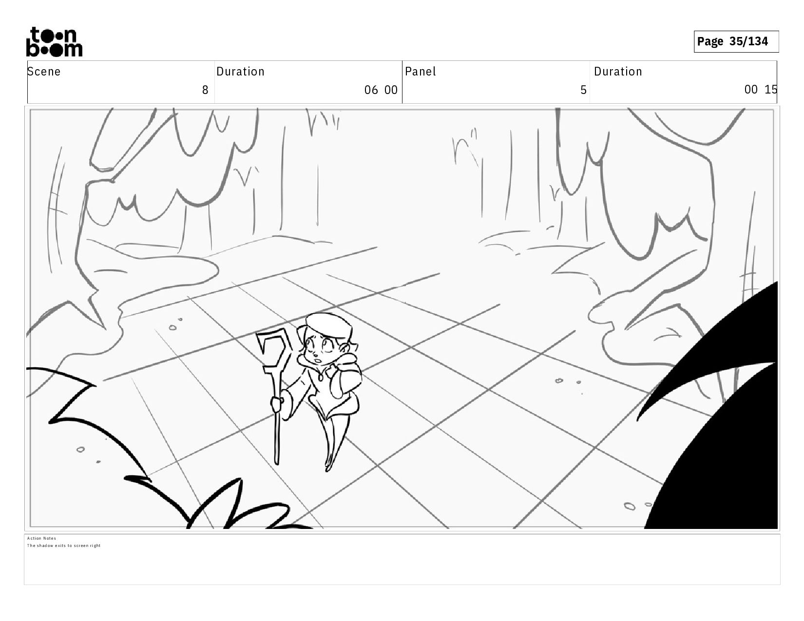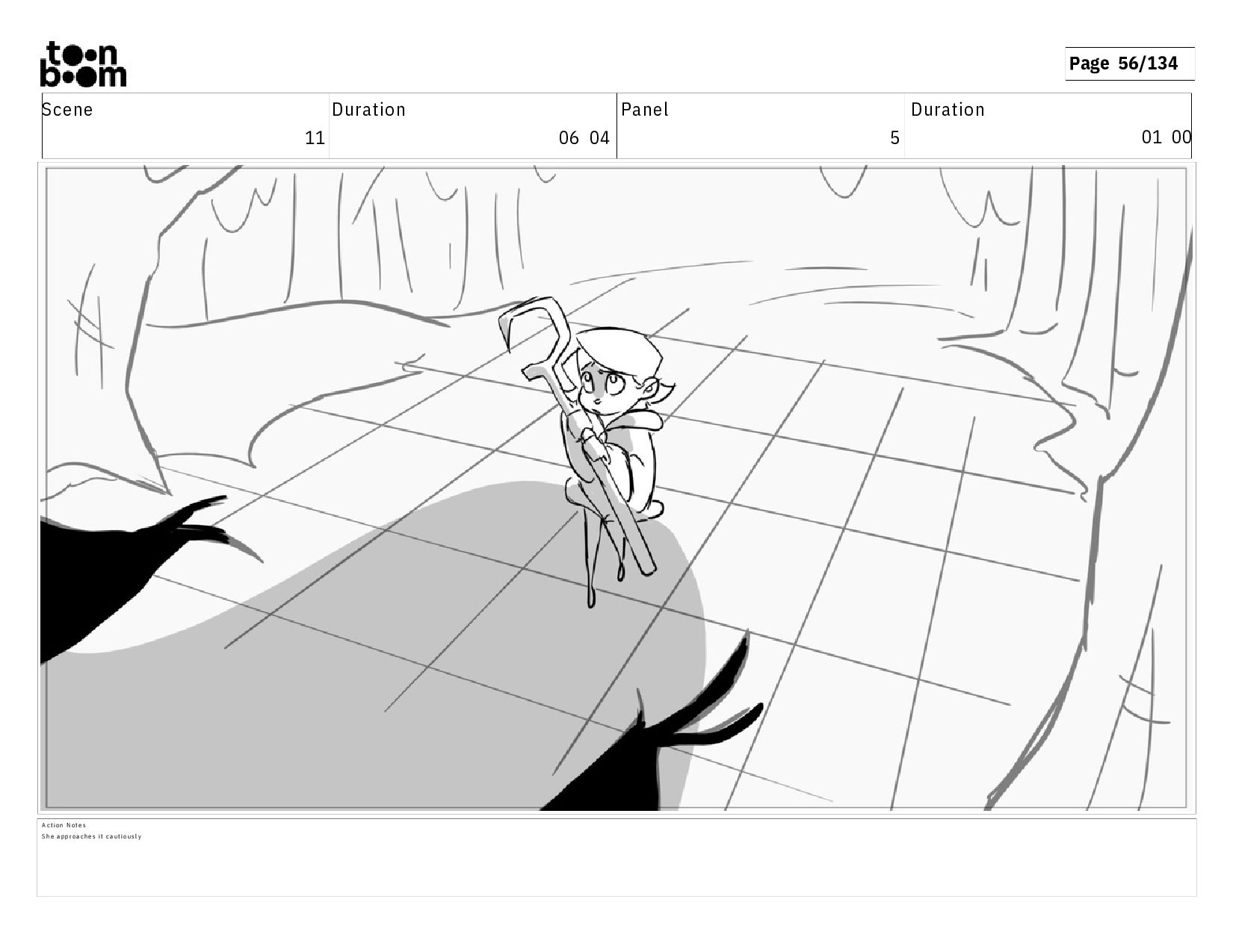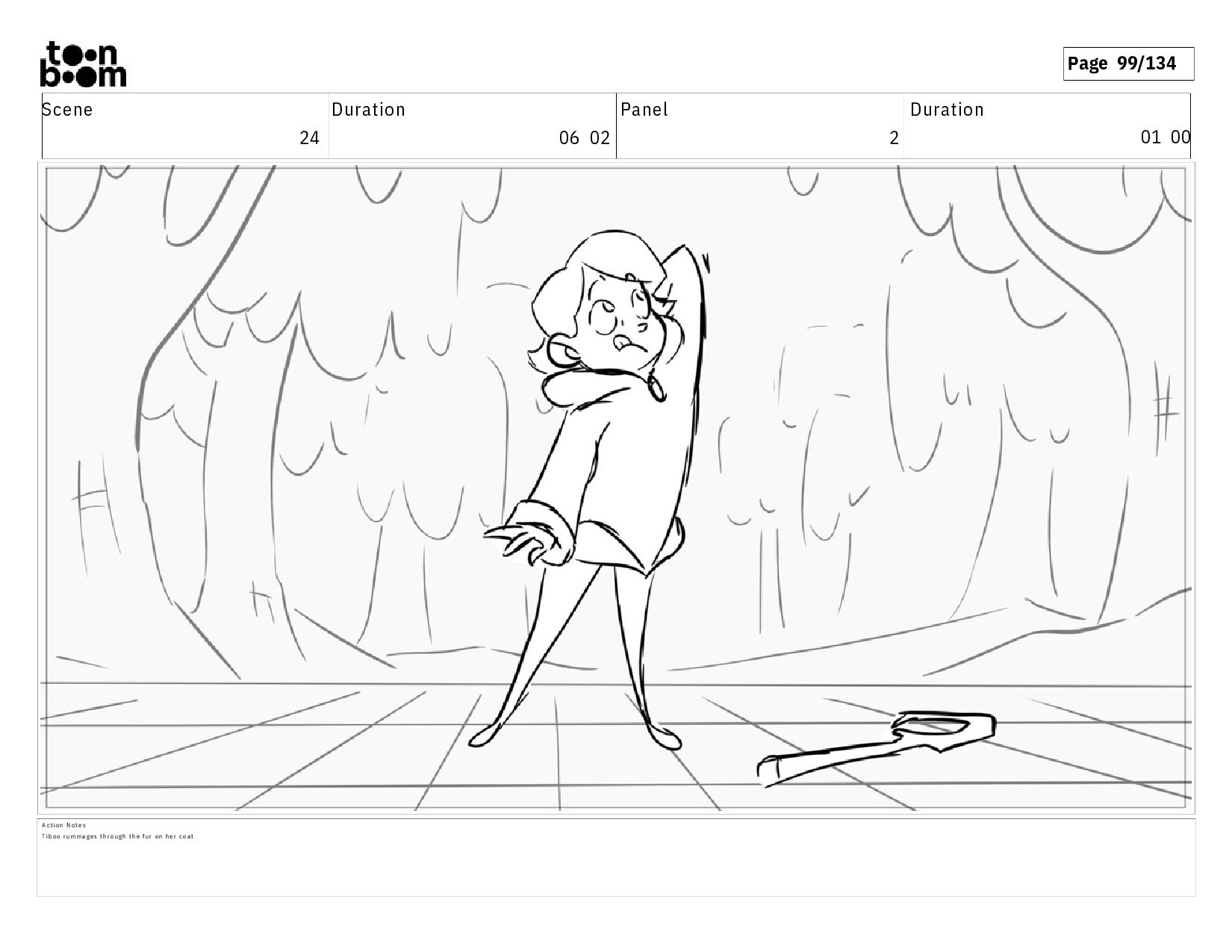 01 16 D i a l o g T I B O O : I h a v e a n i d e a ! A c t i o n N o t e s T i b o o h a s a c l e v e r e x p r e s s i o n , i m m e d i a t e l y d r o p p i n g h e r w a l k i n g s t i c k