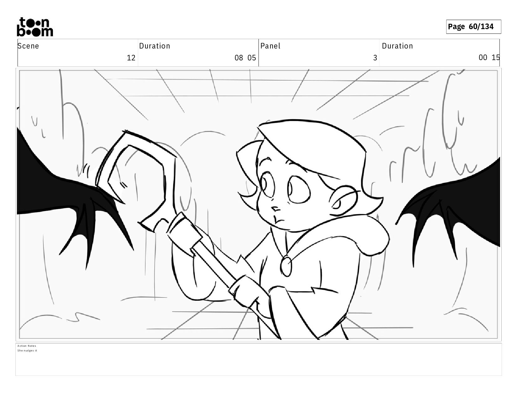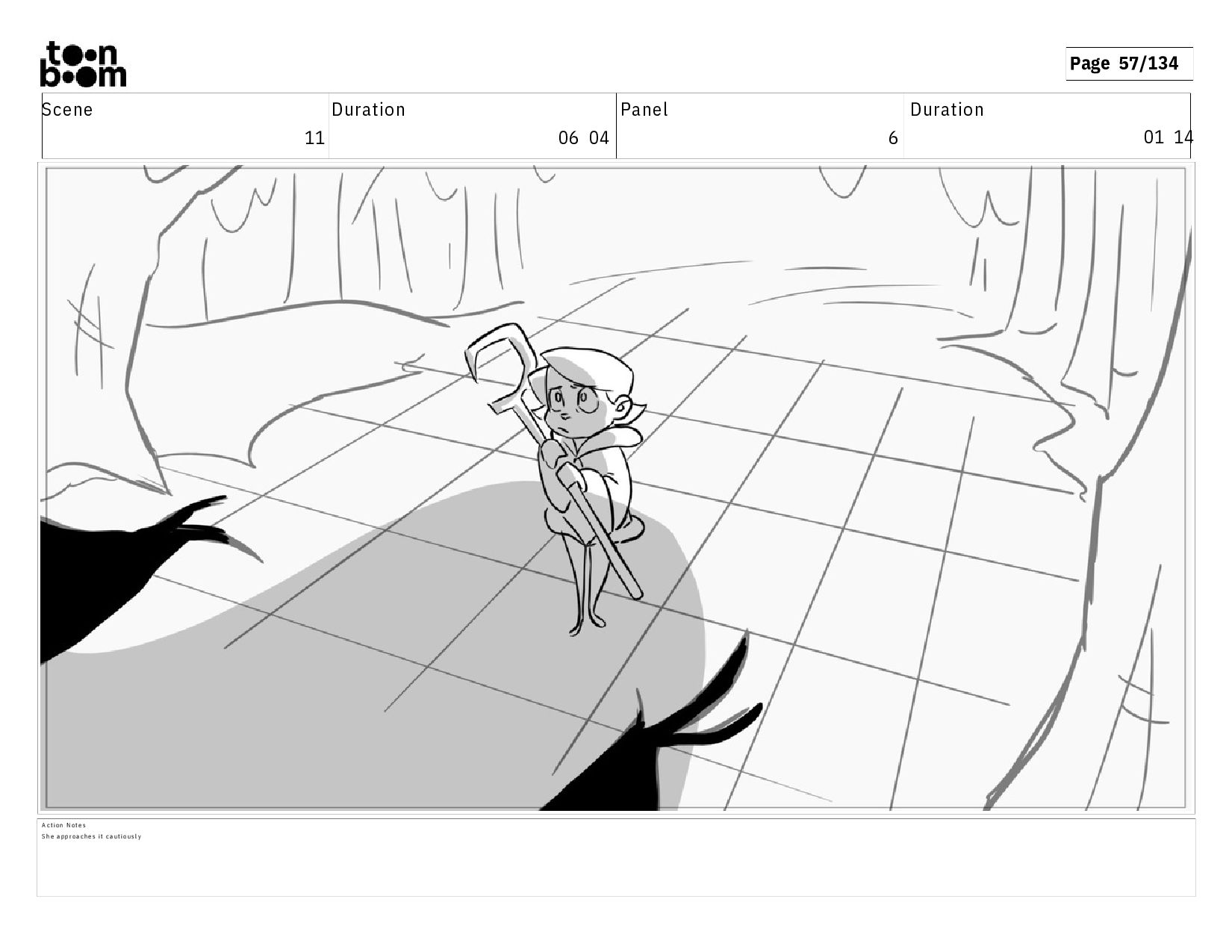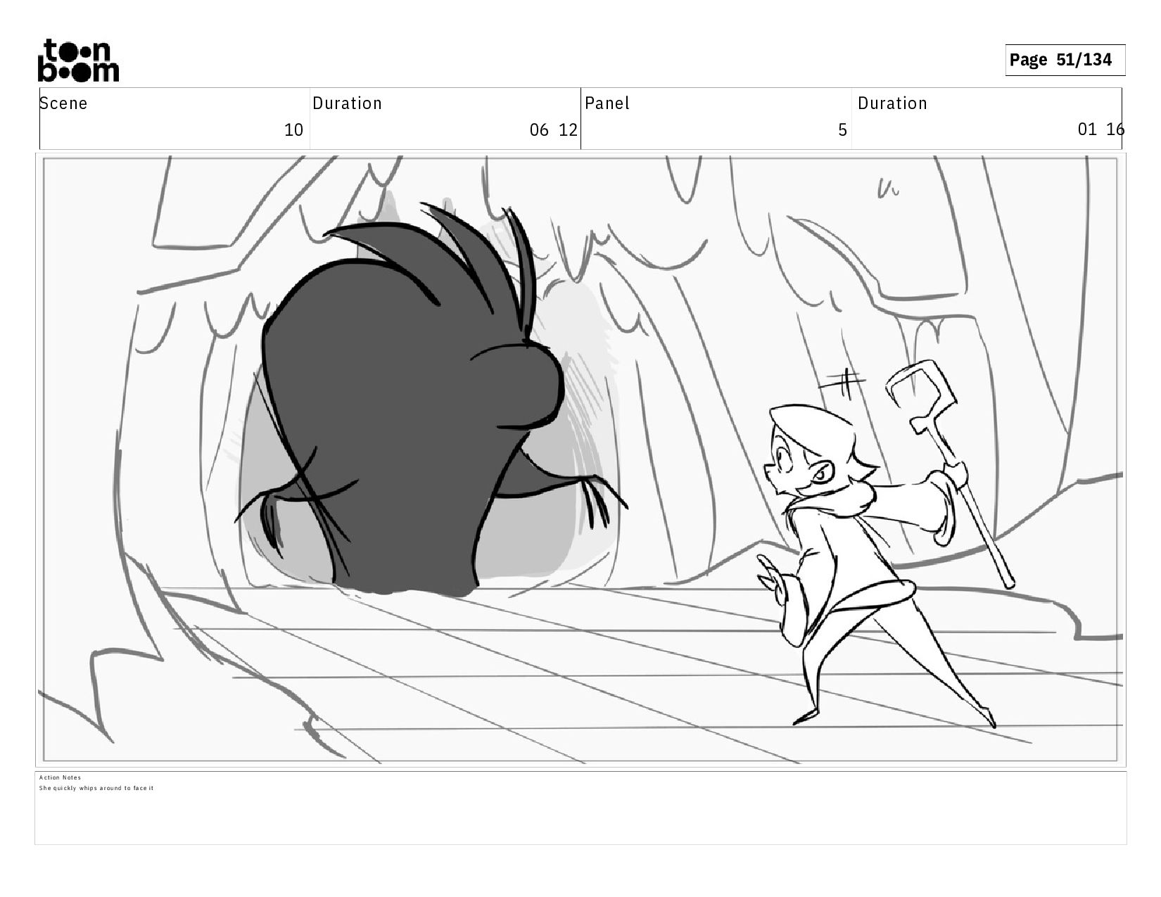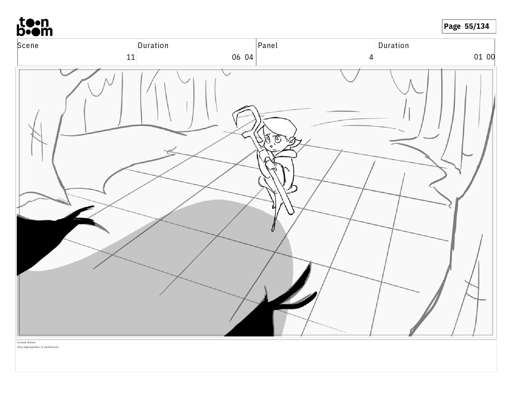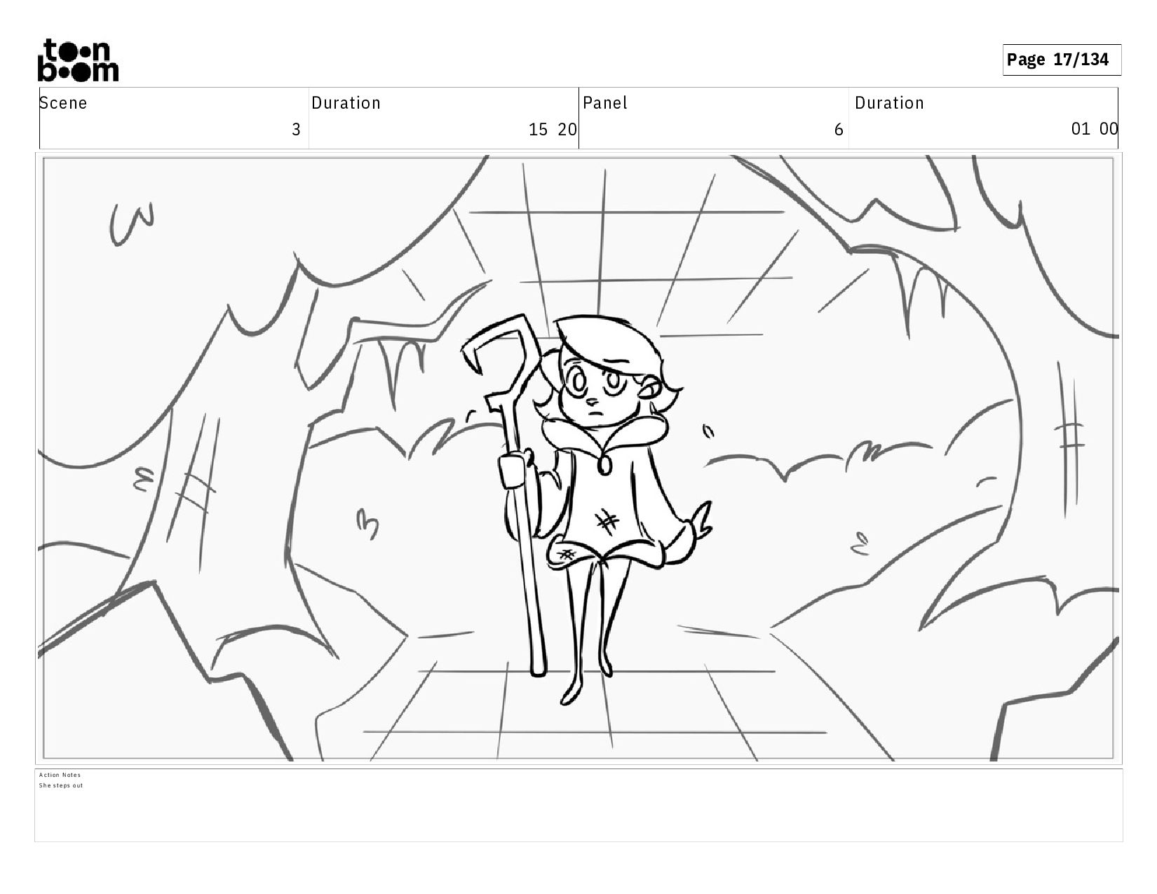 01 16 D i a l o g T I B O O : I h a v e a n i d e a ! A c t i o n N o t e s T i b o o h a s a c l e v e r e x p r e s s i o n , i m m e d i a t e l y d r o p p i n g h e r w a l k i n g s t i c k