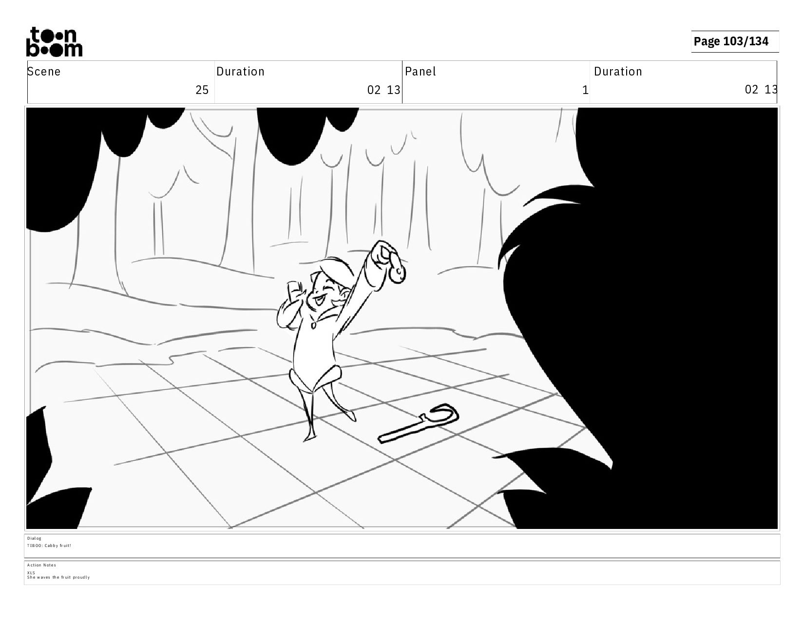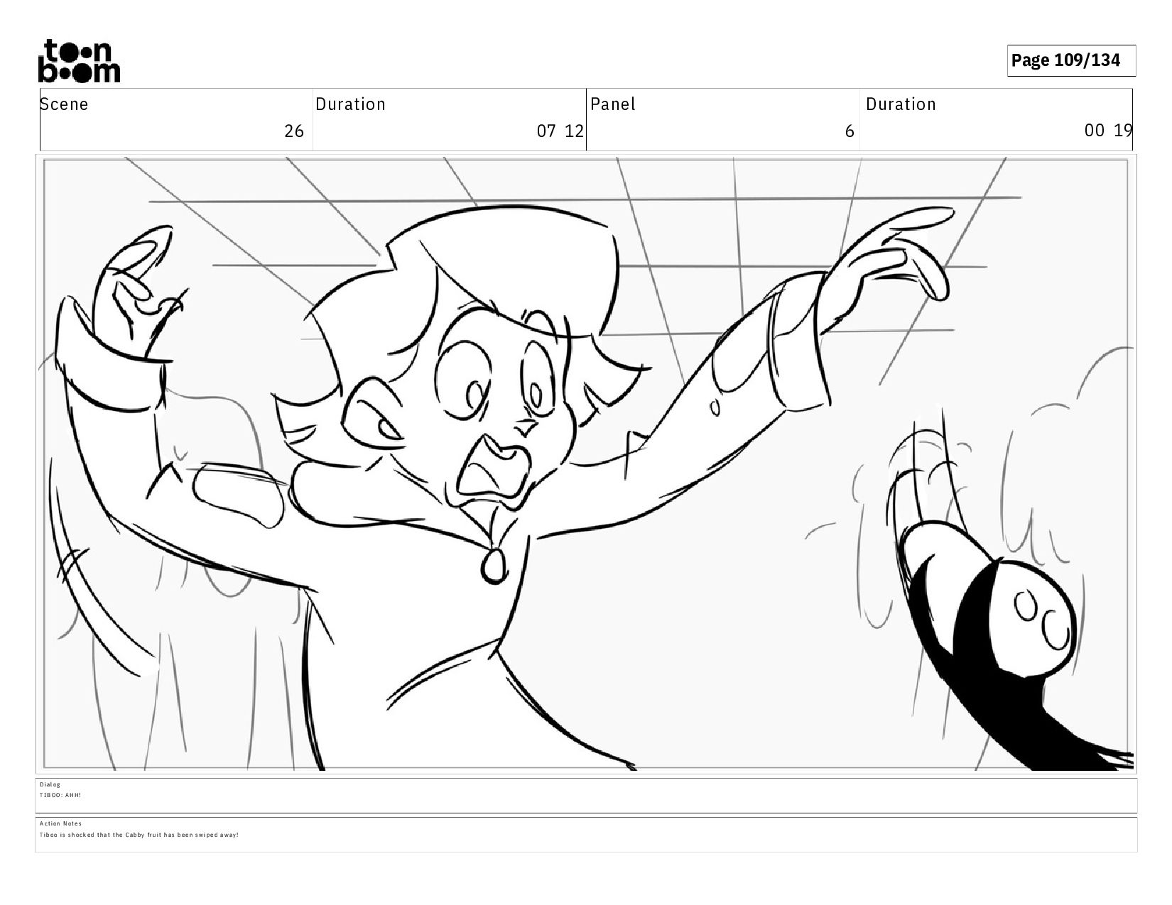 00 19 D i a l o g T I B O O : A H H ! A c t i o n N o t e s T i b o o i s s h o c k e d t h a t t h e C a b b y f r u i t h a s b e e n s w i p e d a w a y !