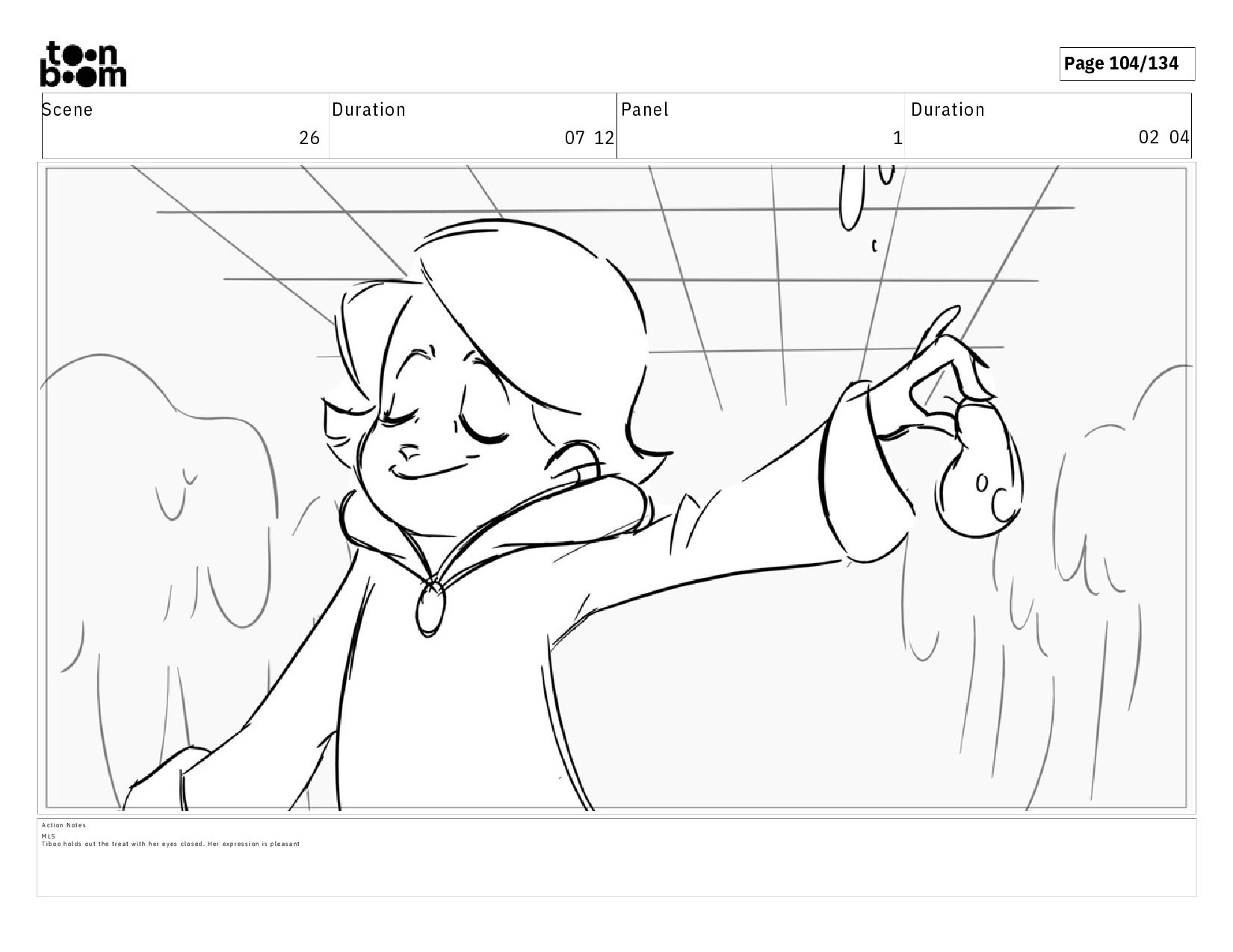 02 04 A c t i o n N o t e s M L S T i b o o h o l d s o u t t h e t r e a t w i t h h e r e y e s c l o s e d . H e r e x p r e s s i o n i s p l e a s a n t